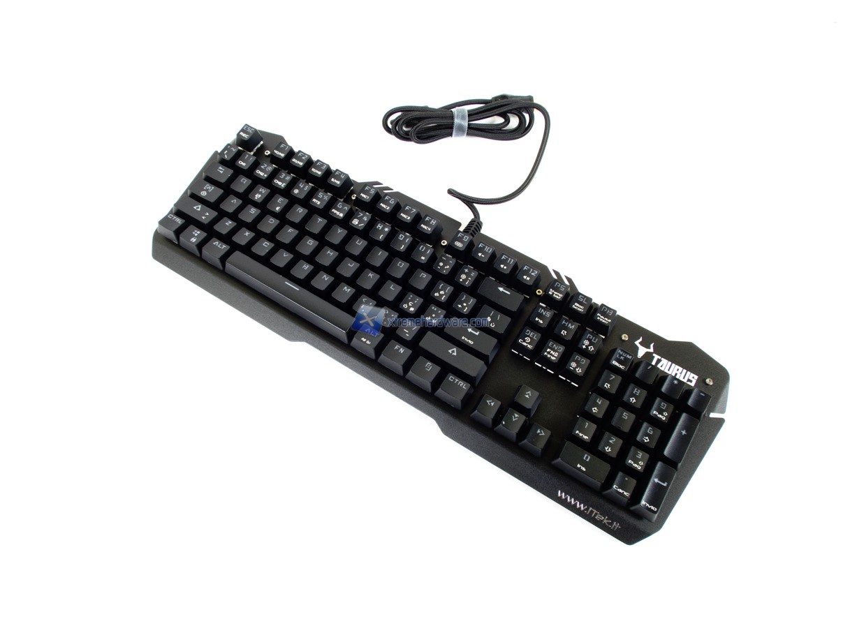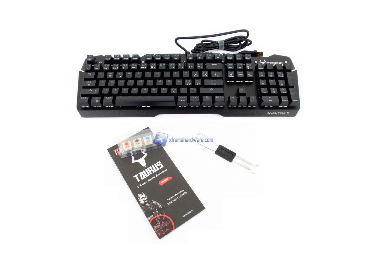 Kit dimostrativo incluso nel bundle. Da notare come gli switch meccanici utilizzati nella Taurus X06 non siano brandizzati ma solo utilizzanti il printing CHERRY MX per poter cambiare CAPS facilmente. CAPS in ABS.