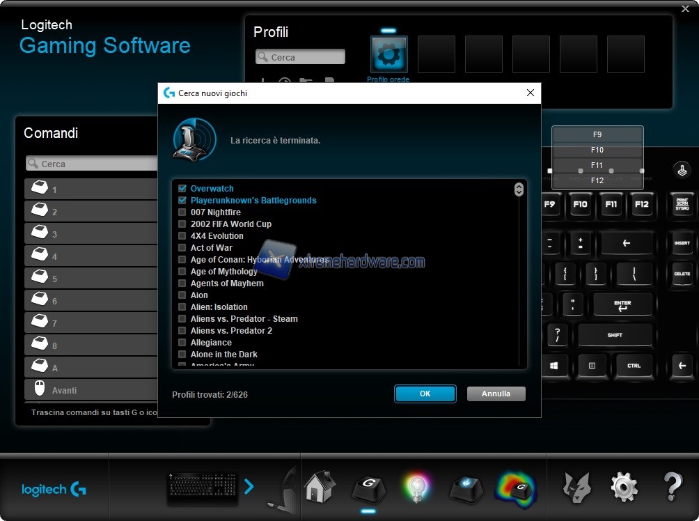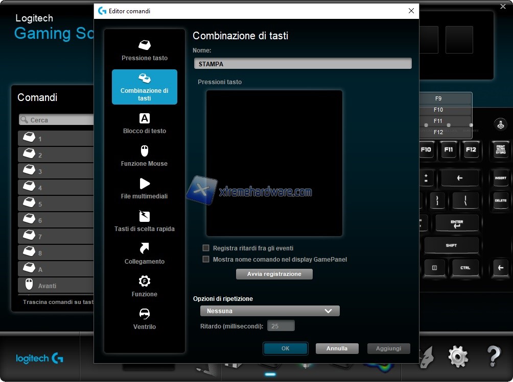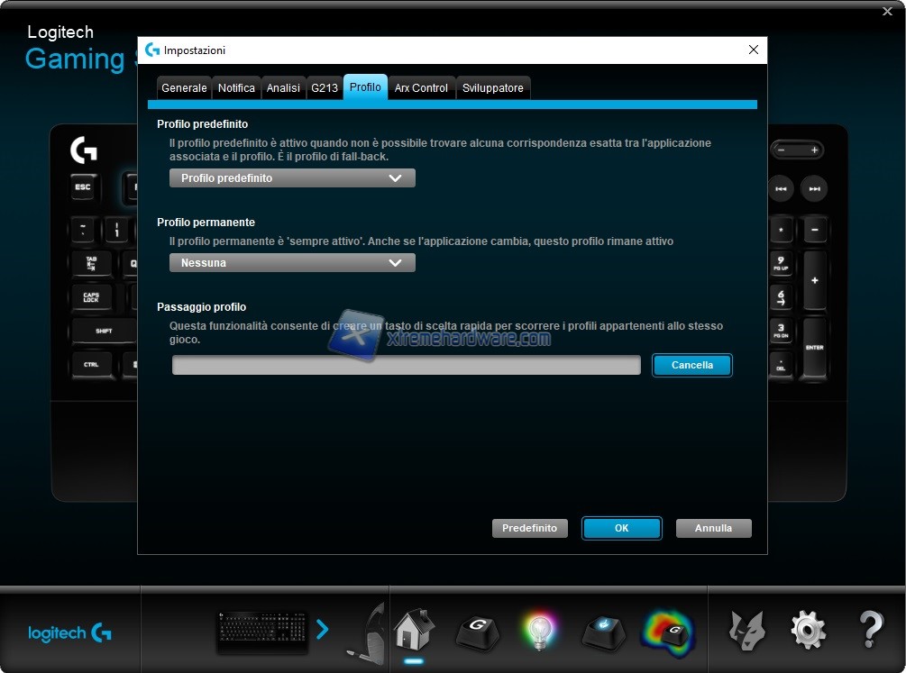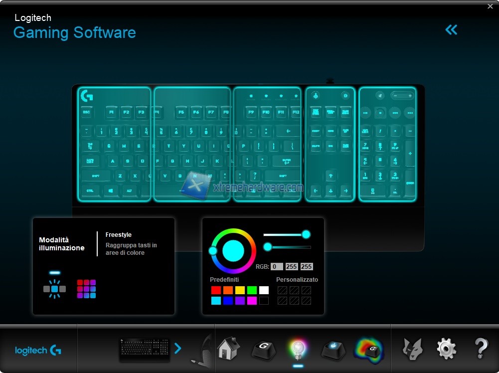 A seguire abbiamo l’icona G che ci aprirà le porte della personalizzazione di profili e funzioni riguardo i tasti Funzione (F1-F12). Potremo assegnare una delle moltissime funzioni e linkarle ad un gioco o applicazione in modo da avere un ulteriore estensione della tastiera o mouse. Se davvero possa servire una cosa del genere.