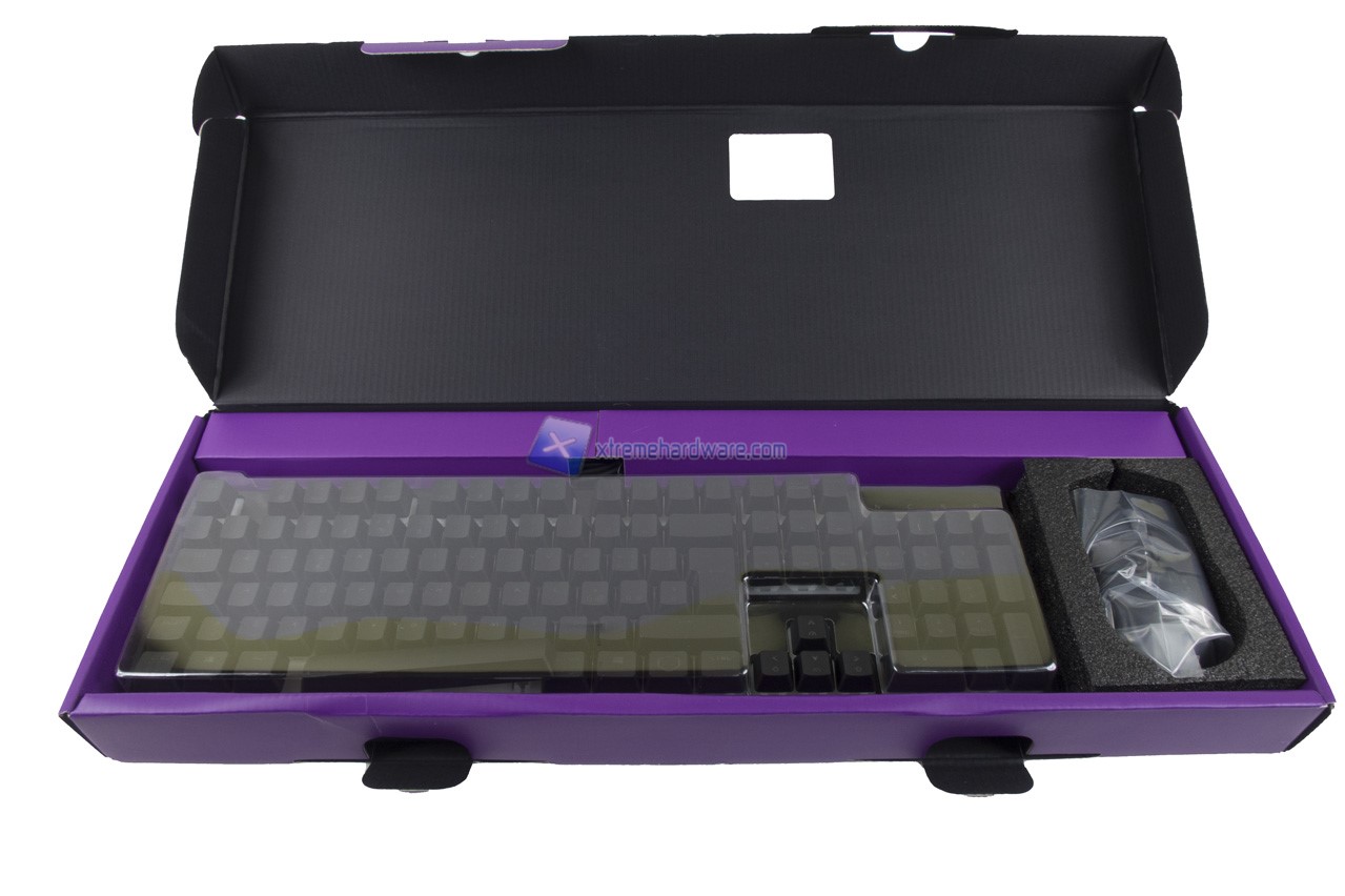 Una volta aperta la confezione del Kit possiamo vedere come il tutto sia ben riposto e protetto. La tastiera presenta un immancabile cover in plastica trasparente riutilizzabili a seguire per proteggerla da polvere e/o sporco.