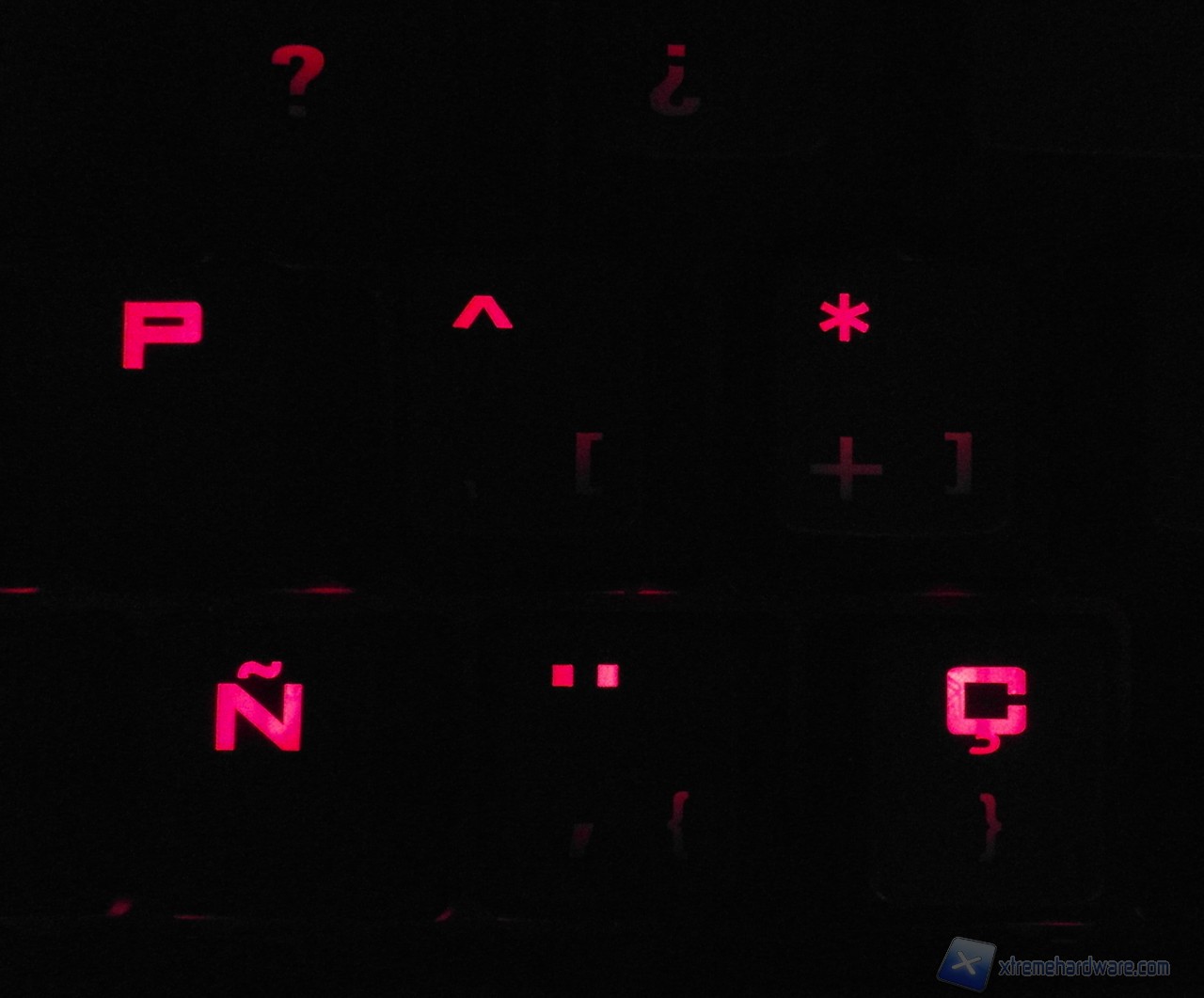 I LED sono posti nella parte alta dello switch, per tale ragione l'illuminazione è sì omogenea a livello di tastiera, ma non tanto a livello di tasto: i simboli della seconda riga (ad esempio la virgola oppure le parentesi) rimangono quasi non illuminati.