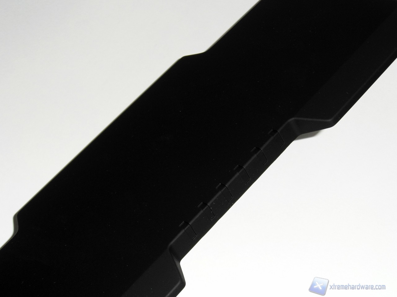 Il poggia polsi removibile è realizzato, come il resto della tastiera, in plastica gommata che lo rende piacevole al tatto; l'aggancio con la tastiera avviene mediante tre clip plastici.