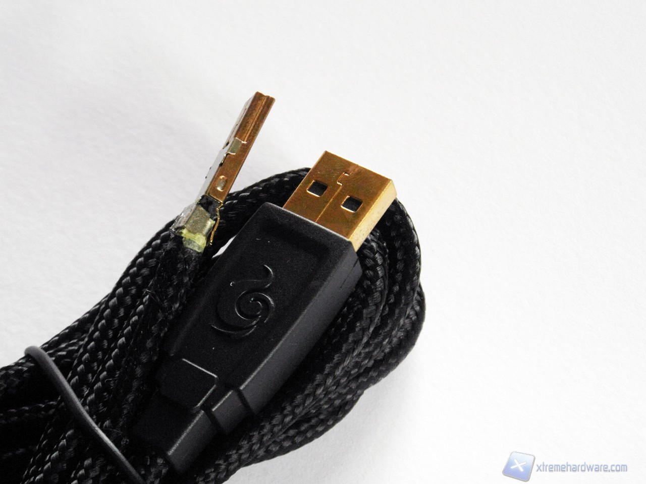 Il cavo USB è separato dalla tastiera, i connettori sono placcati oro ed è presente un filtro in ferrite all'estremità che andrà connessa al PC.