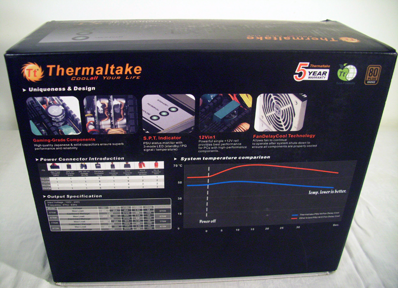 Sul retro sono raffigurate alcune caratteristiche tecniche dell’alimentatore e alcune tabelle. Aprendo la confezione notiamo che il tutto é ben ordinato: il cavo di alimentatore é riposto in una scatola nera, i cavi modulari in un pratico astuccio e l’alimentatore appoggiato sopra due strati di gommapiuma morbida.