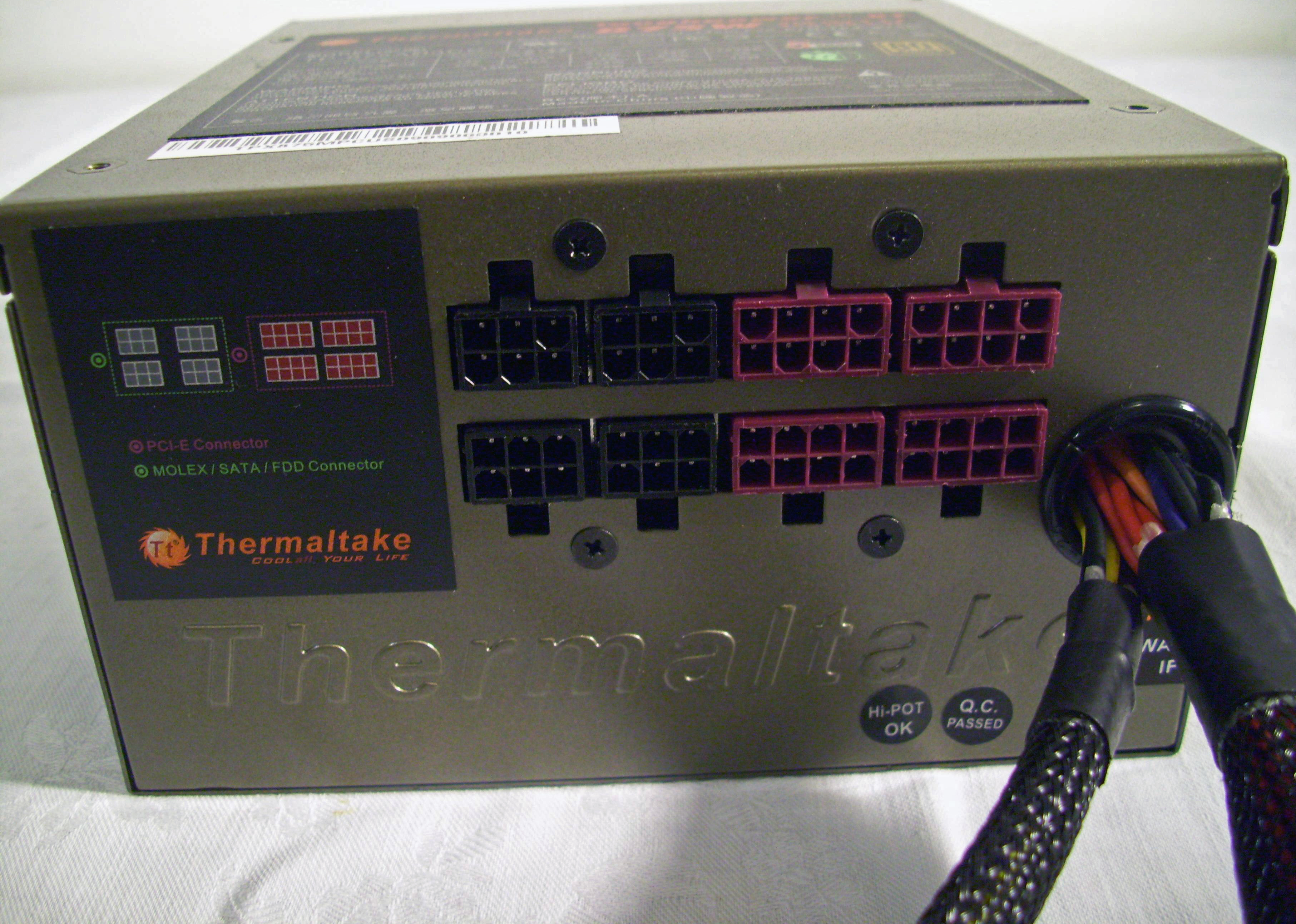 Nella parte anteriore, come si può notare dalle immagini, sono presenti le connessioni per i cavi modulari, un cavo ATX a 24pin e uno a 8 pin. L’attacco dei cavi è molto semplice ed è presente un piccolo schema colorato che illustra come vanno eseguiti i vari collegamenti. Il nuovo Toughpower XT 875W possiede 4 uscite per connettori PCI-E e altre 4 per i molex Sata / 4pin / e connettori FDD.