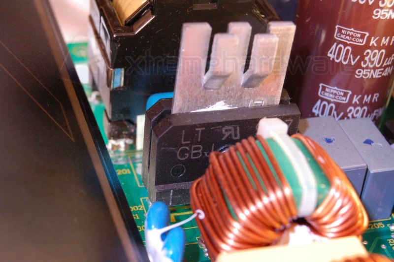 Come si può ben vedere, questa è in realtà l’unica sezione in cui venga utilizzato un dissipatore di discrete dimensioni, come quelli che siamo abituati a vedere all’interno di una psu standard.