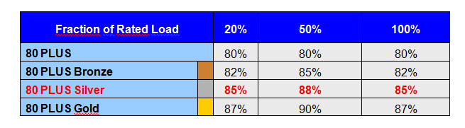 Il SilverStone Strider ST1500 gode della certificazione 80plus Silver sinonimo di altissima efficienza rispetto alla certificazione standard. Ricordiamo, che la certificazione 80 plus silver viene rilasciata agli alimentatori che hanno un'efficienza dell' 85%, 88%,85%, rispettivamente in condizioni di carico del 20%, 50%, e 100%.