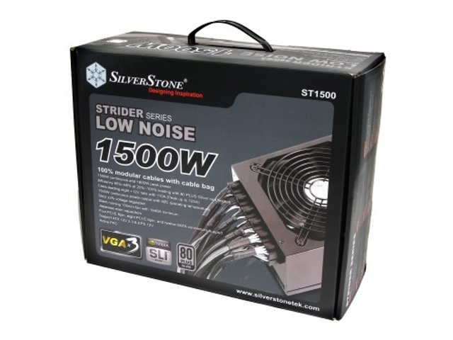 L’aspetto dello Strider ST1500 è ben curato, sobrio e di sicuro impatto visivo. SilverStone ha optato per una colorazione di color nera lucido, rendendo il prodotto molto signorile ed elegante. L'alimentatore si presenta completamente modulare, infatti non esistono cavi direttamente collegati ad esso. Le dimessioni sono molto generose, 150 x 86 x 220 mm (WxHxD).