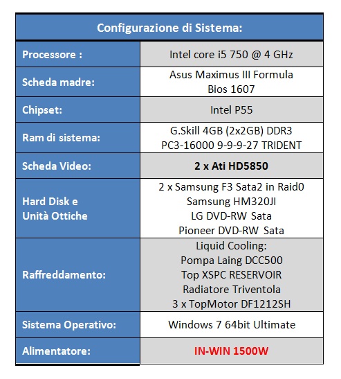 Per i nostri test ci siamo avvalsi della seguente configurazione di prova: