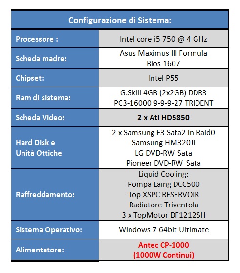 Il sistema di prova che abbiamo usato è composto dai seguenti componenti che potete osservare nello schema sottostante: