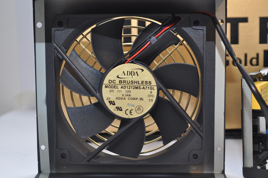 Il Silent Pro Gold 600W è raffreddato da una ventola di diametro 120mm termo-controllata da 12V e 0.34A, specificatamente è il seguente modello: AD1212MS-A71GL che possiede una velocità di rotazione variabile dai 500 ai 2000rpm con una rumorosità di 22-36 dB(A).