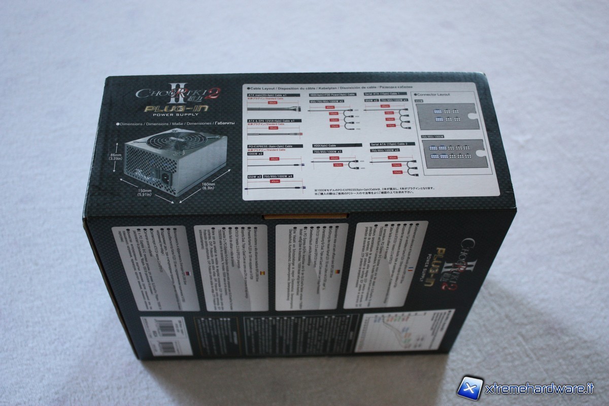 Il Chouriki 2 Plug-in ha un design semi-modulare; i cavi principali, non modulari, sono il 20+4 pin per la scheda madre, lungo 50cm ed un connettore 4+4 pin per la cpu da 55cm. Grazie alla modularità degli altri cavi, saremo noi a decidere cosa collegare in base alle nostre necessità.