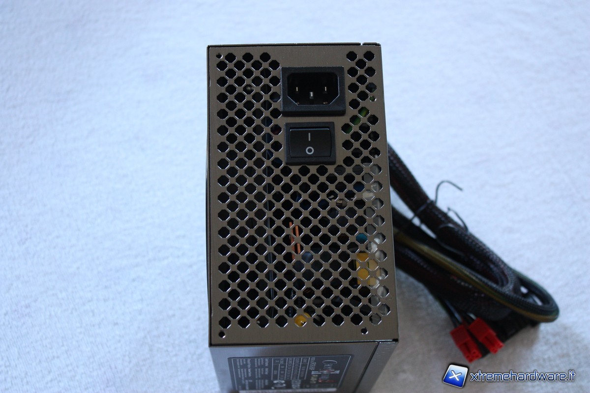 Nella zona laterale è applicato il classico adesivo che ci darà tutte le informazioni riguardanti gli amperaggi erogati del nostro alimentatore.