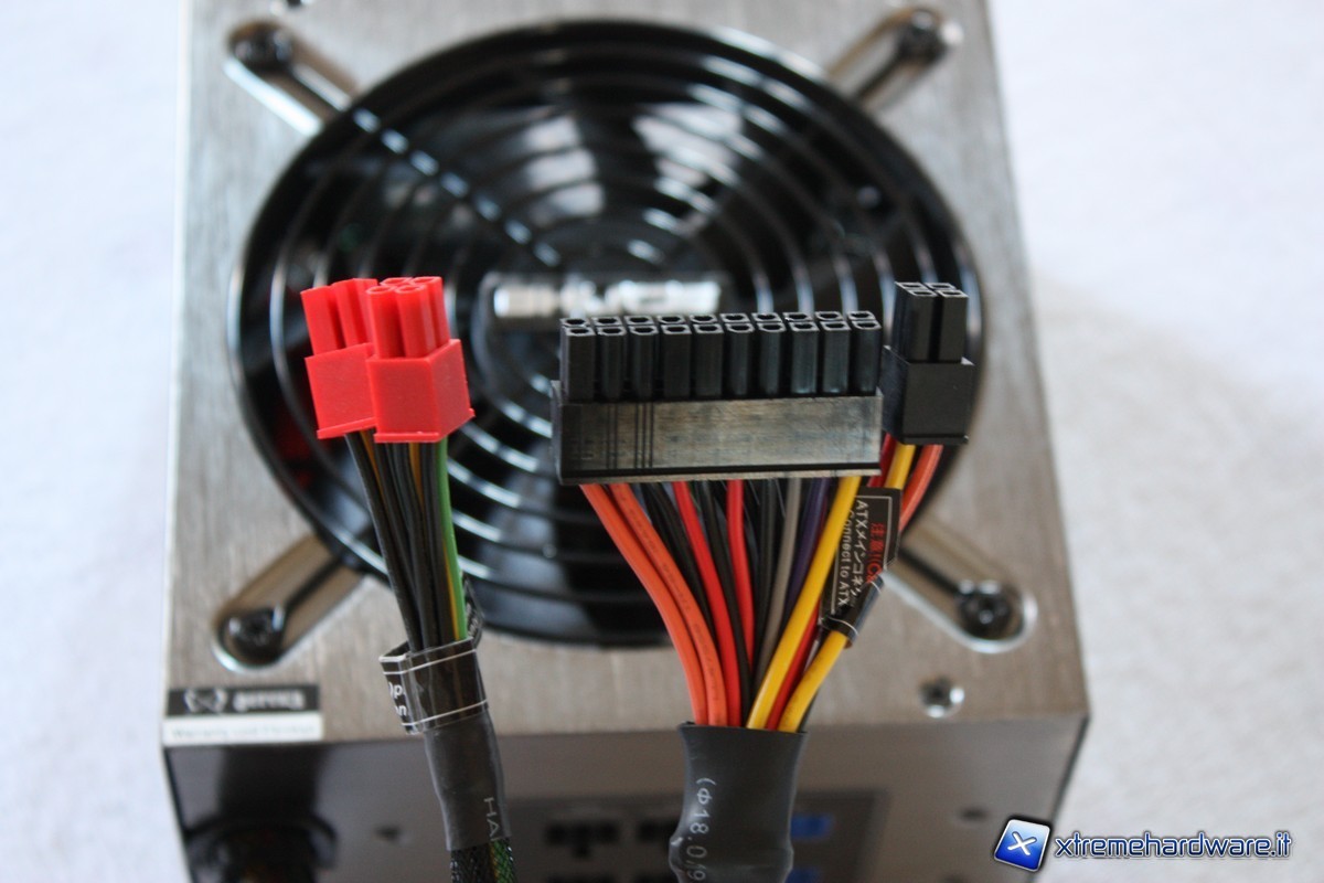La prima linea da 12v (+12v1) fornirà corrente al connettore della scheda madre, ai connettori PCI-E e a tre cavi dell’alimentazione Sata. La seconda linea da 12v (+12v2) alimenterà il connettore per la cpu ed i restanti connettori per l’alimentazione degli hard disk.