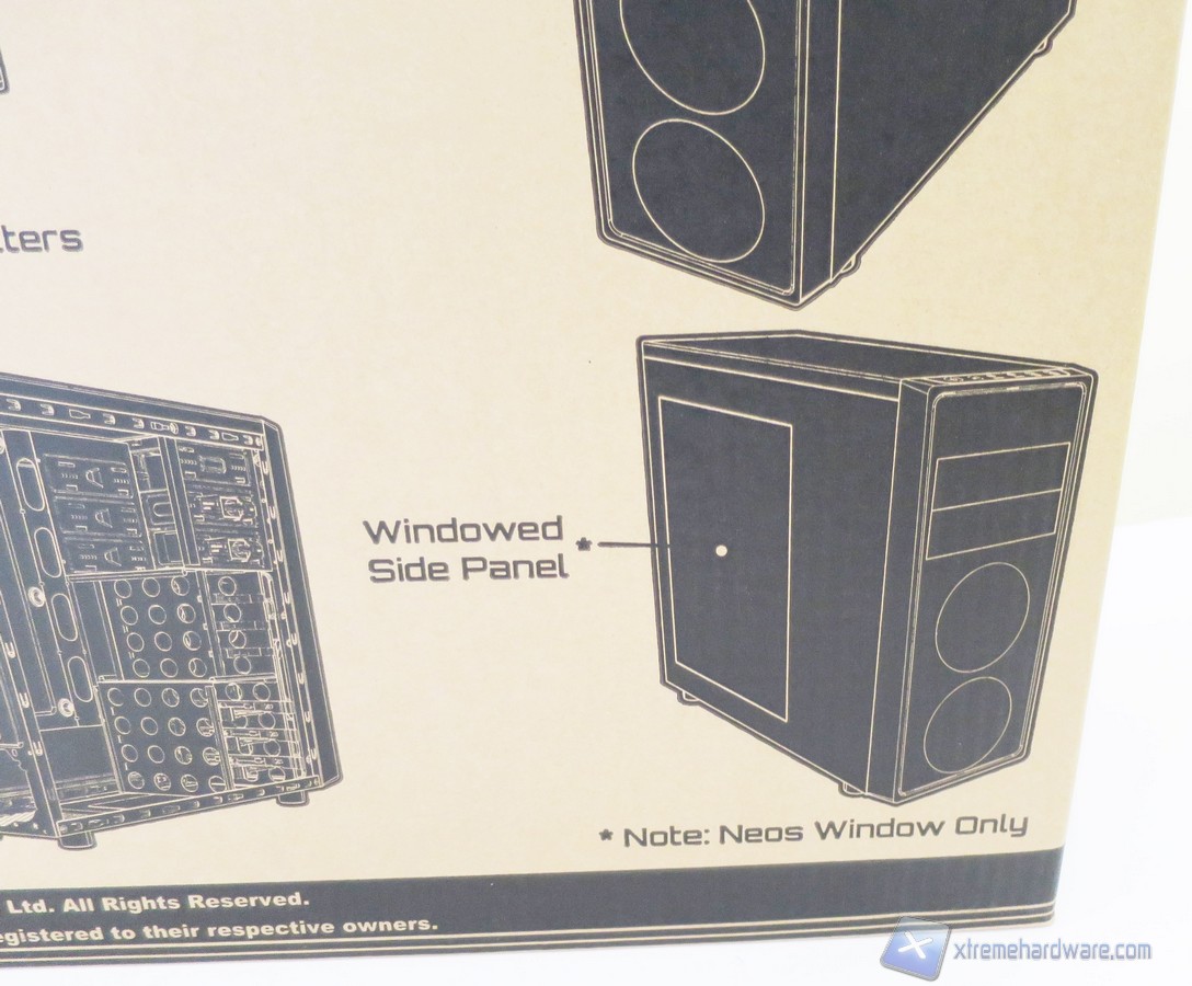 La confezione del BitFenix Neos è come sempre realizzata in cartone. Nella parte frontale ed in quella posteriore vengono riportate alcune informazioni come il modello del case, un’immagine illustrativa dello stesso, alcune caratteristiche salienti del prodotto ed i riferimenti all’azienda.