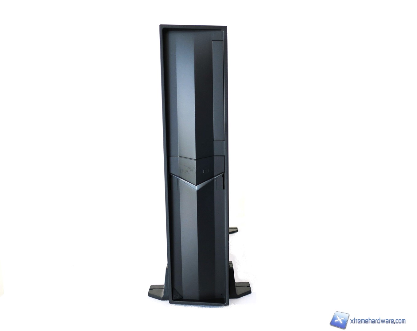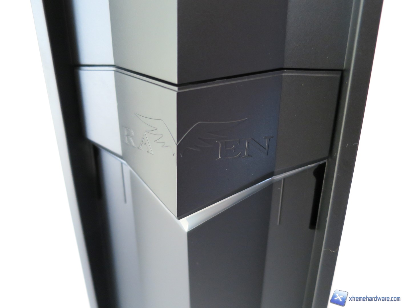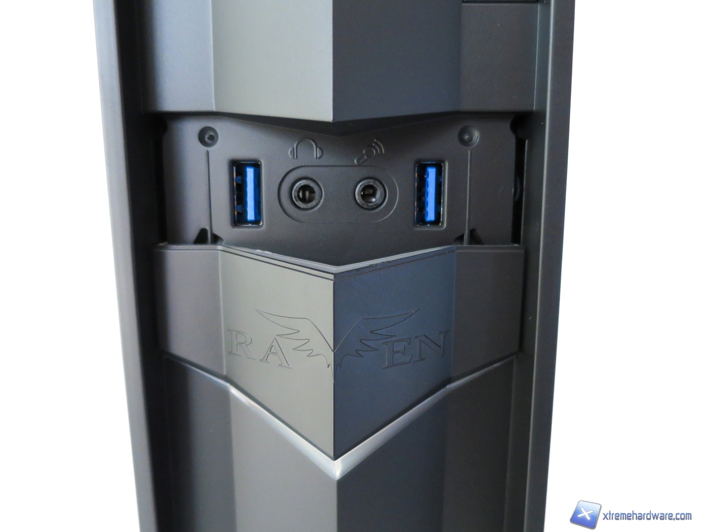 Da notare anche i due fori verticali su cui potremo far scorrere questo inserto in plastica dove campeggia appunto logo e nome Raven per accedere agli ingressi frontali presenti nel Raven RVZ02 (due USB 3.0 e i due clasici jack audio).