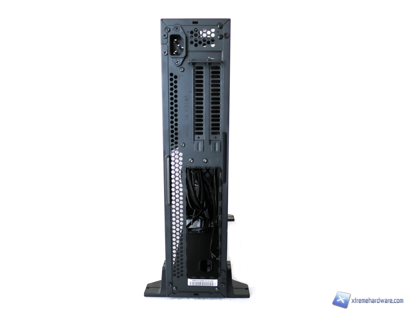 Il retro del SilverStone Raven RVZ02 invece si caratterizza per un design slim e nel dettaglio troviamo, partendo dall’alto, i due slot PCI-Express insieme alla presa di alimentazione, che ricordiamo essere dotata di prolunga per l’alimentatore SFX da installare internamente. Sotto i due slot PCI-Express troviamo semplicemente il foro per l’I/O Shield del case. Da notare anche come le due zone scheda madre/alimentatore e scheda video siano invertite e non ‘’comunicanti’’ sullo stesso piano.