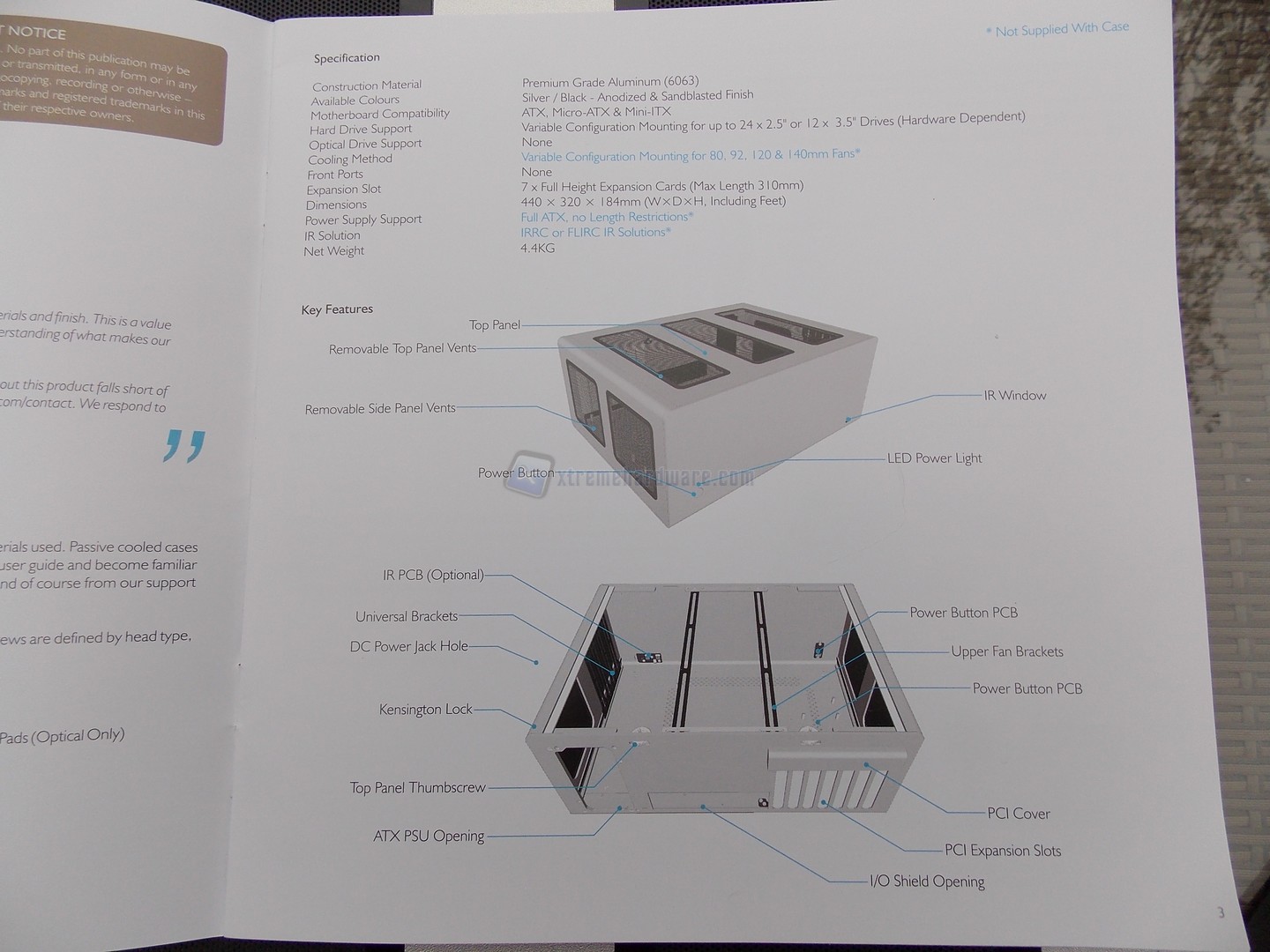 Il bundle in dotazione è elementare ma completo. Non troviamo ventole preinstallate, ragion per cui si comprende subito che dovrà essere riposta attenzione alla dissipazione termica delle componenti interne.