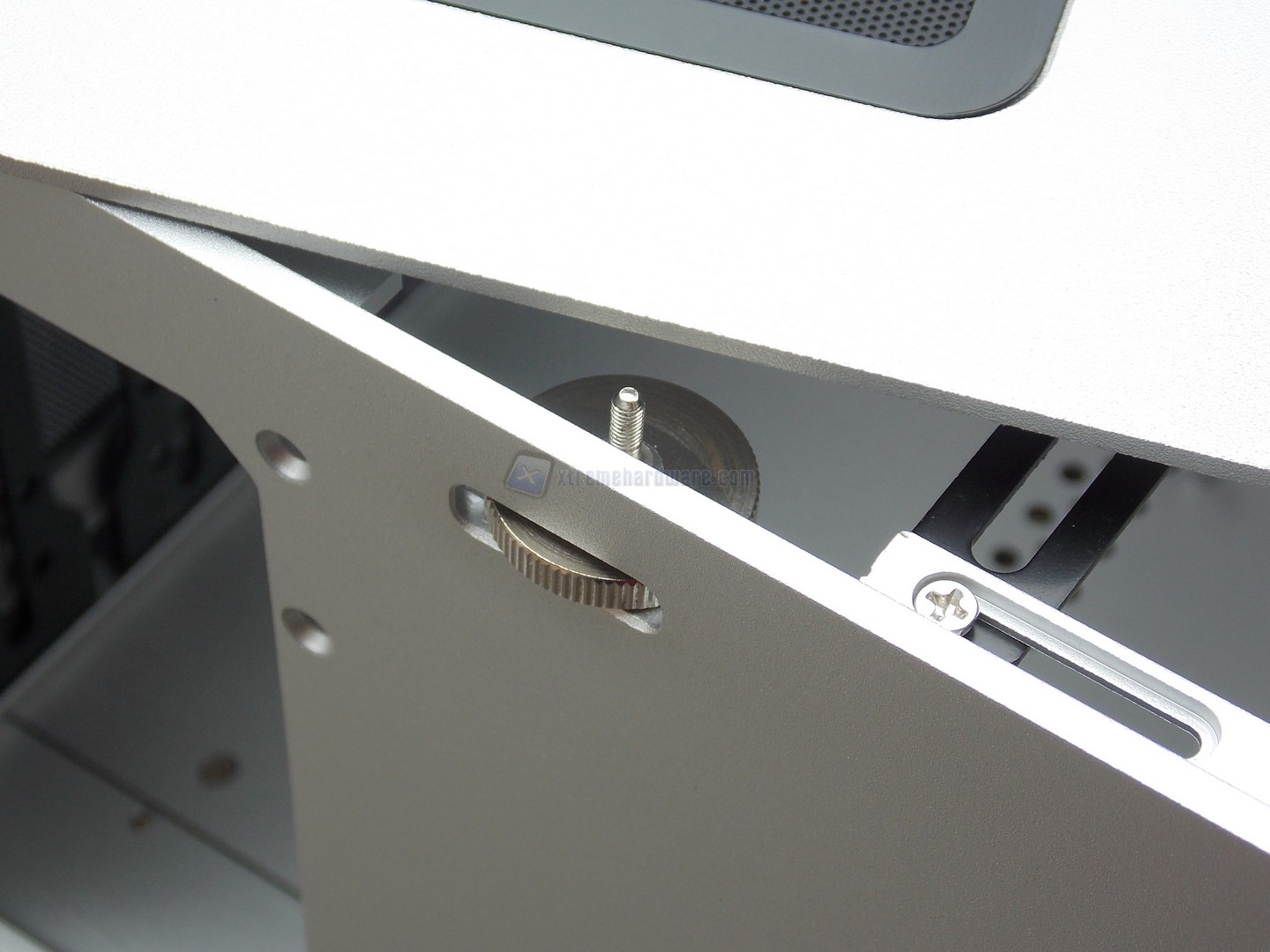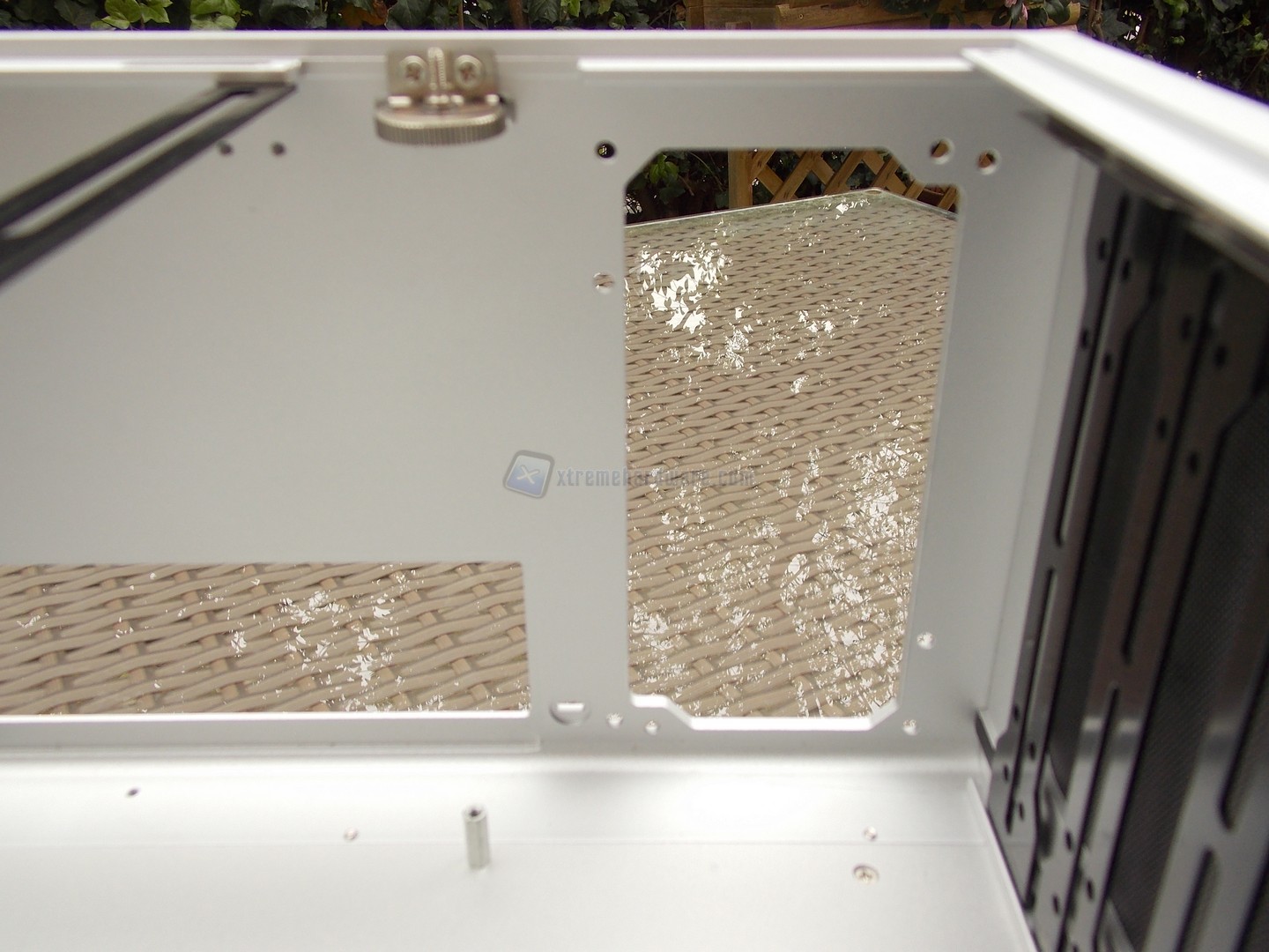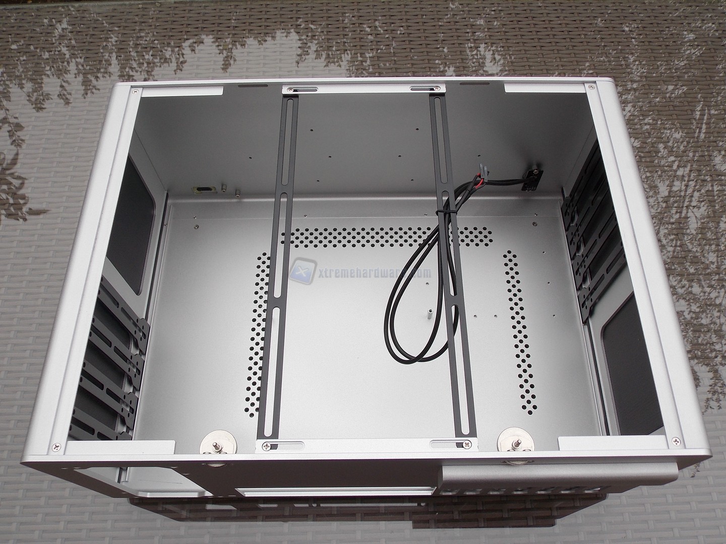 Il piatto della scheda madre è interamente in alluminio e lo spessore è decisamente molto elevato. Il plate della scheda madre è elementare, ricordiamo che è necessario installare gli spacer per il montaggio della stessa sul telaio inferiore. E' possibile installare schede madri fino allo standard E-ATX, senza problemi. Consigliamo però l'adozione di standard micro-ATX. E' possibile installare dissipatori ad aria low profile, ma consigliamo caldamente l'adozione di un dissipatore a liquido AIO avente un radiatore da 120mm, o 240mm.