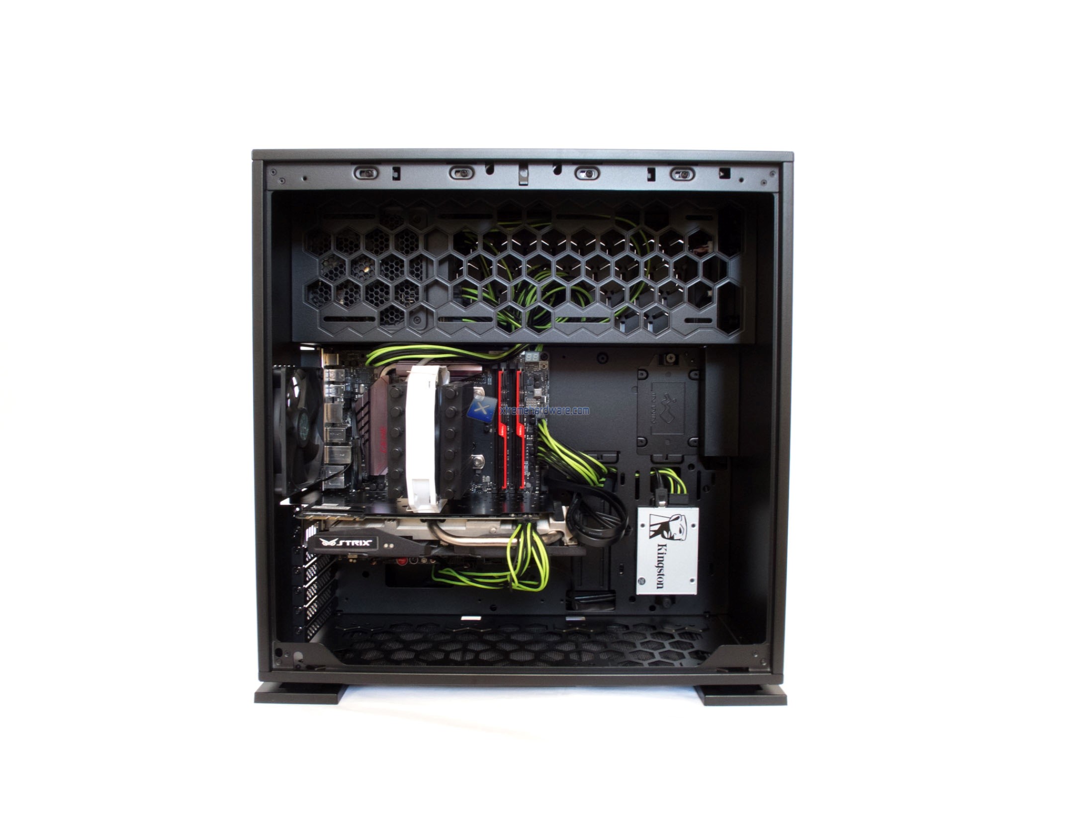 L’installazione nel In Win 303 è risultata veloce e ottima. La disposizione dei componenti è ben organizzata e ottimizzata. A seconda del numero di SSD o Hard Disk, tenendo a mente il supporto numerico massimo, potremo ottimizzare ancora più il cablaggio già di per se valido grazie al vano adibito al solo PSU con in più uno spessore laterale tra Tray e paratia di 2,5 cm. I fori per il cablaggio sono ben studiato seppur abbiamo storto un po' il naso vista l’assenza di un foro per il cavo 8 Pin EPS che dovrà passare dall’alto verso la sua collocazione e quindi resterà abbastanza visibili.