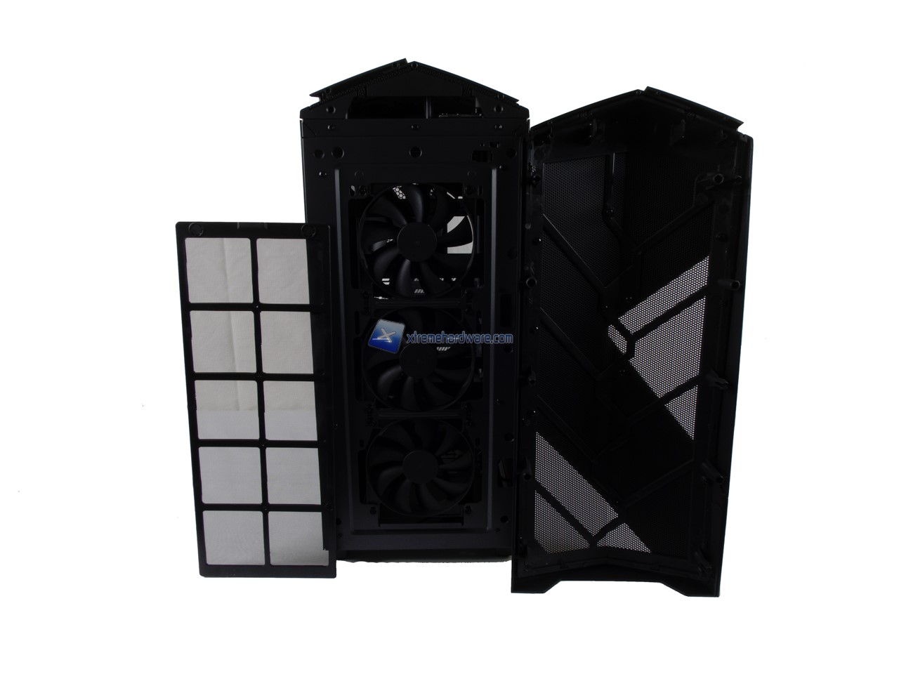 Come per ogni altro case tali pannelli potranno essere rimossi con estrema facilità. Rimuovendo il pannello frontale potremo accedere alle tre ventole poste poco dietro. Sono tre NZXT FN V2 da 120 mm che abbiamo visto più volte essere valide come base di partenza.