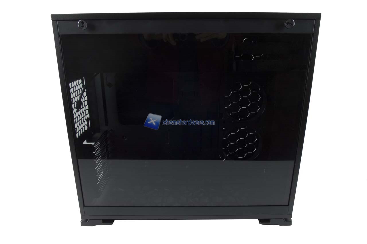 Il pannello di destra mostra il classico design esagonale. Fori posizionati in corrispondenza del supporto per due ventole da 120 mm e/o radiatore da 240 interno.