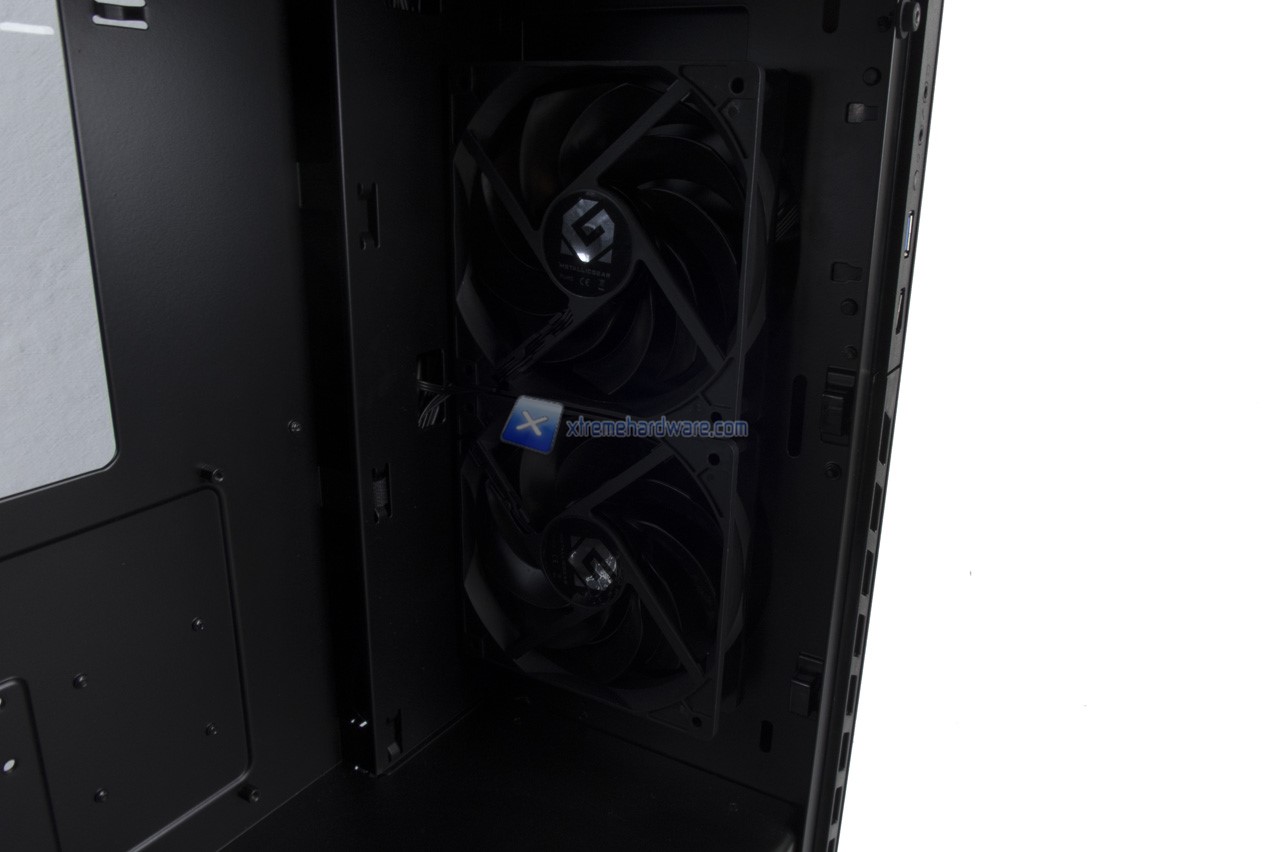 Passando al lato frontale destro osserviamo le due ventole da 120 mm preinstallate.