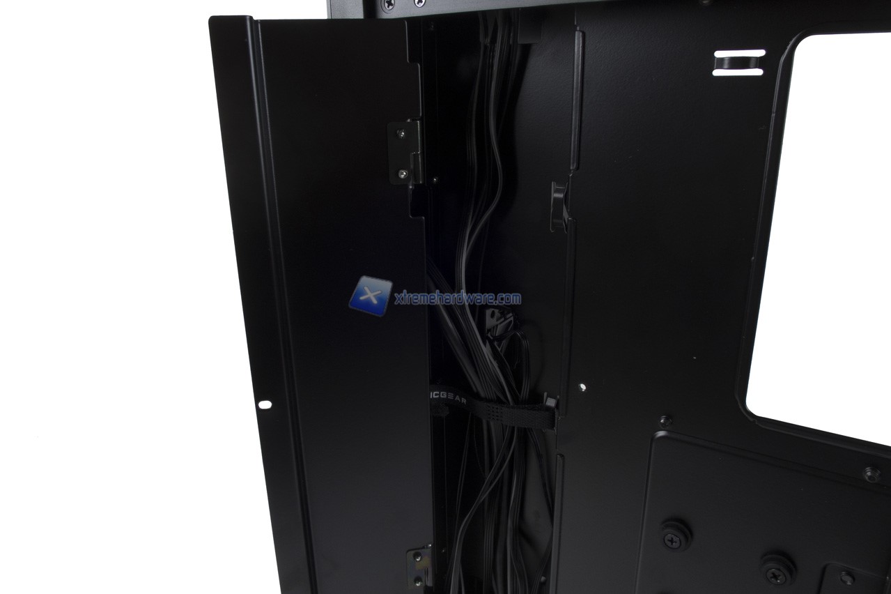 Nel lato sinistro è invece presente uno sportellino che ci permetterà di effettuare un adeguato cablaggio e nascondere la maggior parte dei cavi verso la scheda madre e scheda video oltre quelli frontali delle ventole con un eventuale AIO. Soluzione ben studiata da parte di Metallic Gear e vista anche a volte in altri case di fascia anche più alta.