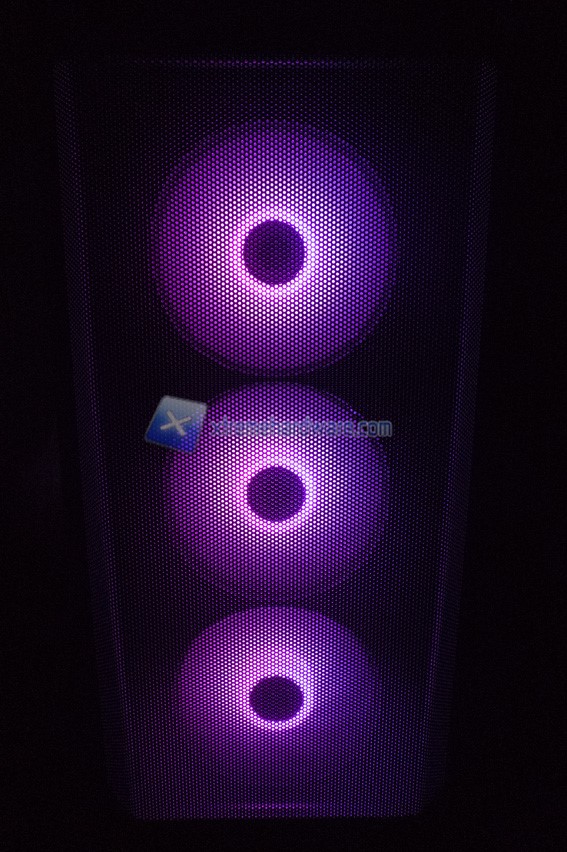 A seguire alcune immagini dell’illuminazione RGB garantita dalle tre ventole Phanteks D-RGB controllabili direttamente dal controller RGB integrato nelle porte I/O o scheda madre Header Digital RGB 5V.