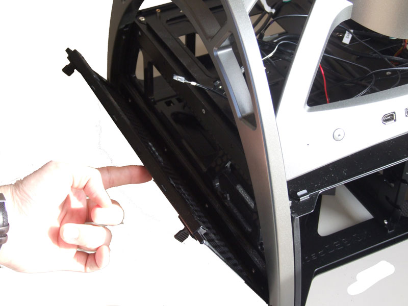 Lo Skeleton è caratterizzato da alcune trovate molto interessanti che ci aiutano nell’installazione dei vari componenti, possiamo infatti vedere come il cestello che comprende tutto il reparto scheda madre, drive ottici e alimentatore sia completamente estraibile (smontando prima la barra di plexiglass utilizzata per bloccare la VGA e le schede PCI). Le paratie laterali inoltre sono facilmente rimovibili e ci permettono un rapido accesso ai nostri componenti.