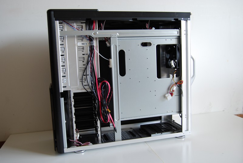 In questo modo è possibile assemblare comodamente i componenti fuori dal case e successivamente inserire il piatto con tutti componenti all'interno. Il piatto comprende anche la ventola posteriore e la parte posteriore del case che funge da supporto per le schede pci e pci-express. Tutto sommato quindi può quasi funzionare come un banchetto.