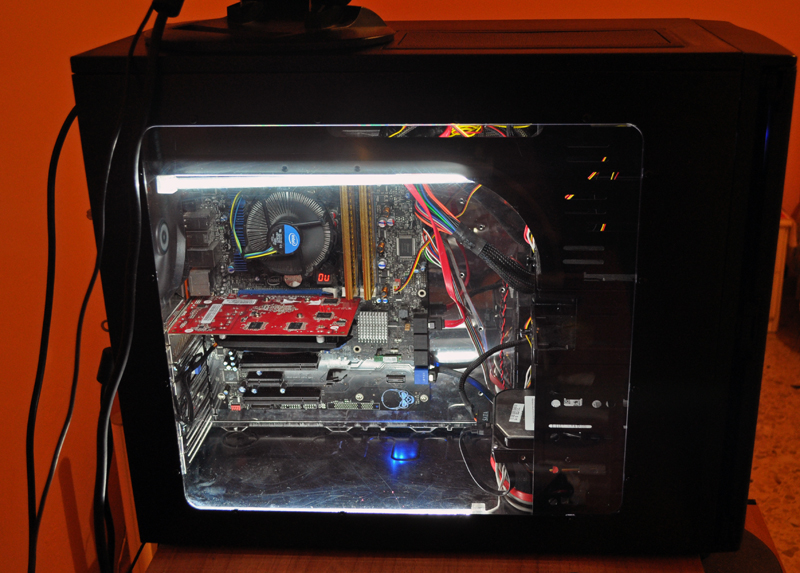 Ecco il risultato finale utilizzando la paratia laterale trasparente, i neon bianchi di Akasa: Cold cathode light (link qui) e l’alimentatore Freedom Power 750W, che a breve recensiremo. La discussione del modding effettuato e dei vari lavori è disponibile sul nostro forum qui.