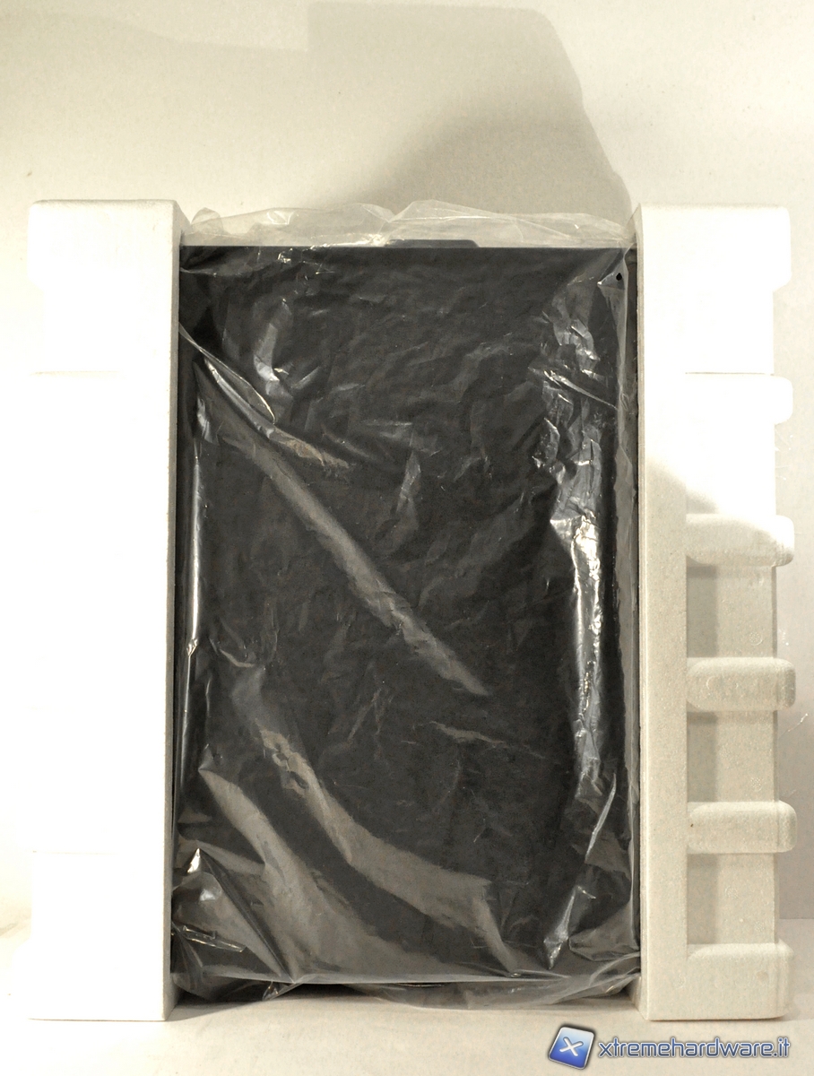 Il Bitfenix Shinobi giunto in redazione è contenuto in una confezione di cartone di colore giallo. Aprendo la scatola, notiamo che il case è protetto da due strati di polistirolo e racchiuso in un telo di plastica al fine di evitare graffi e danneggiamenti durante il trasporto.