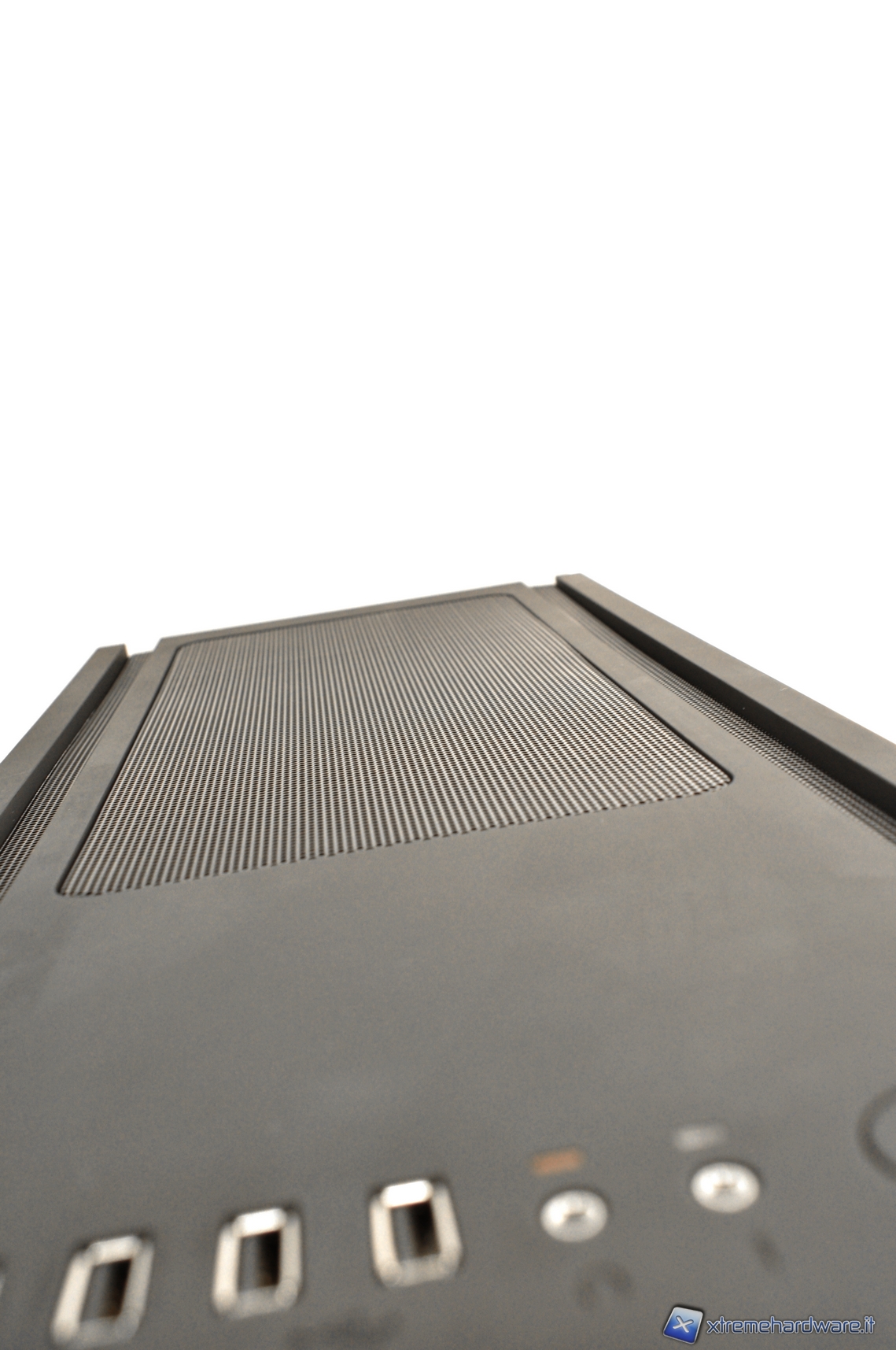 Più avanti troviamo una grande griglia che permette l’espulsione dell’aria calda grazie alle due ventole installabili sul tetto. E’ possibile montare fino a 2 ventole da 140mm o 2 ventole da 120mm. Anche qui come nella parte frontale troviamo due feritoie parallele che permettono un miglior flusso d’aria all’interno della struttura.