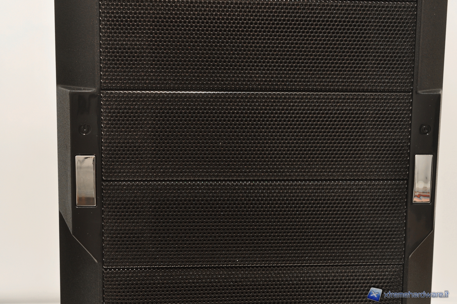 Nella parte centrale del case, ai lati, troviamo due pulsanti rettangolari che servono uno per l’accensione e l’altro per il reset del computer.