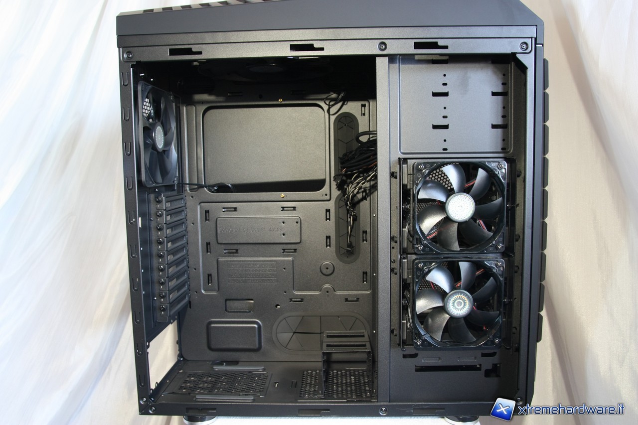 La parte interna del Trooper è interamente verniciata di colore nero. Spicca subito l'imponente finestra adibita per le operazioni di cambio del dissipatore: lo smontaggio del backplate della scheda madre sarà un'operazione facile e veloce visto l'enorme spazio messo a disposizione.