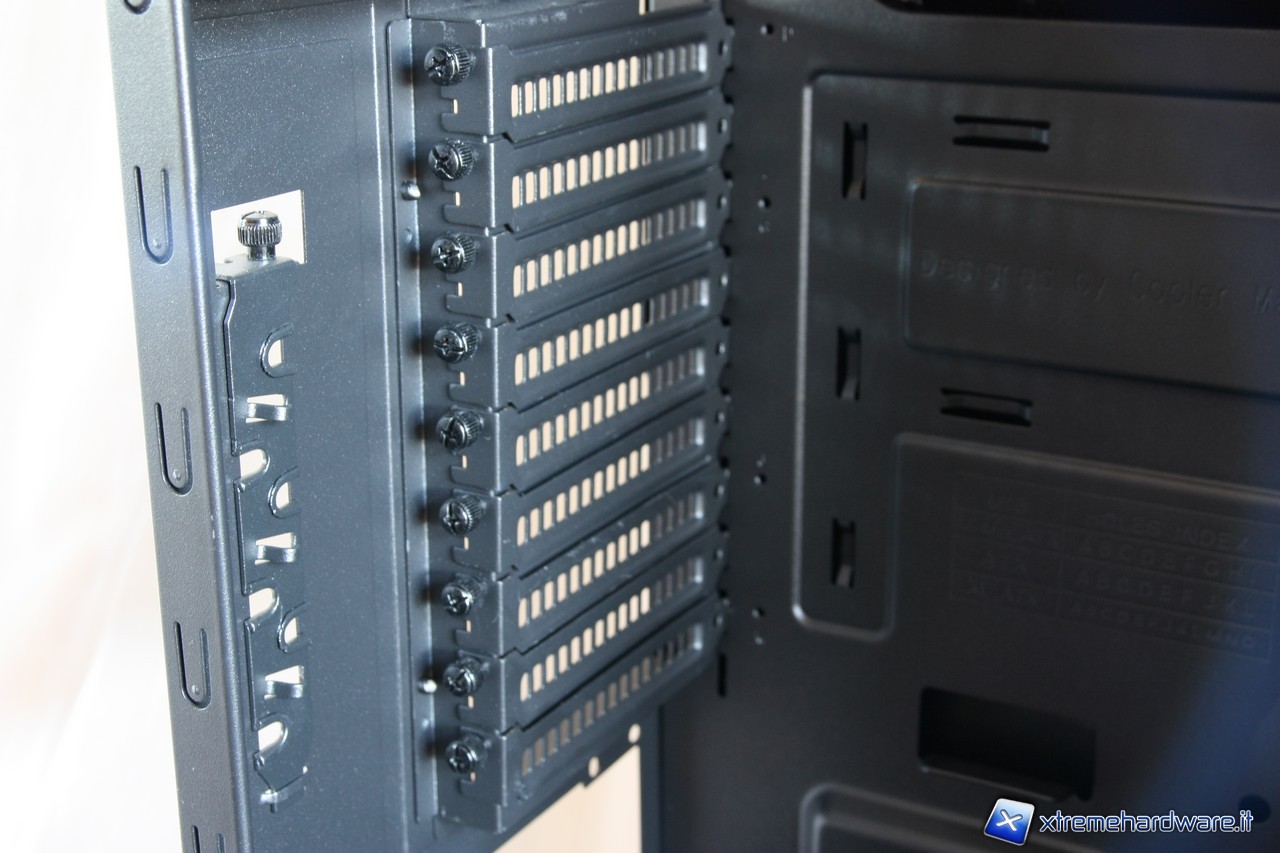 I nove slot di espansione PCI sono equipaggiati con un classico sistema a vite (thumbscrew) per il montaggio delle periferiche.