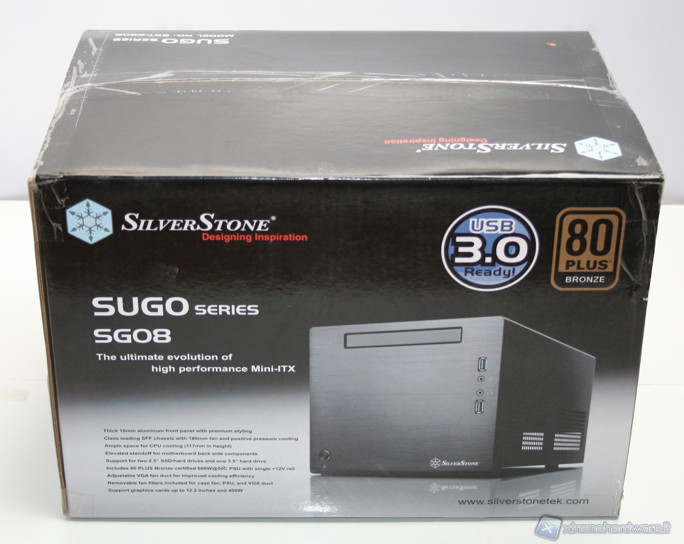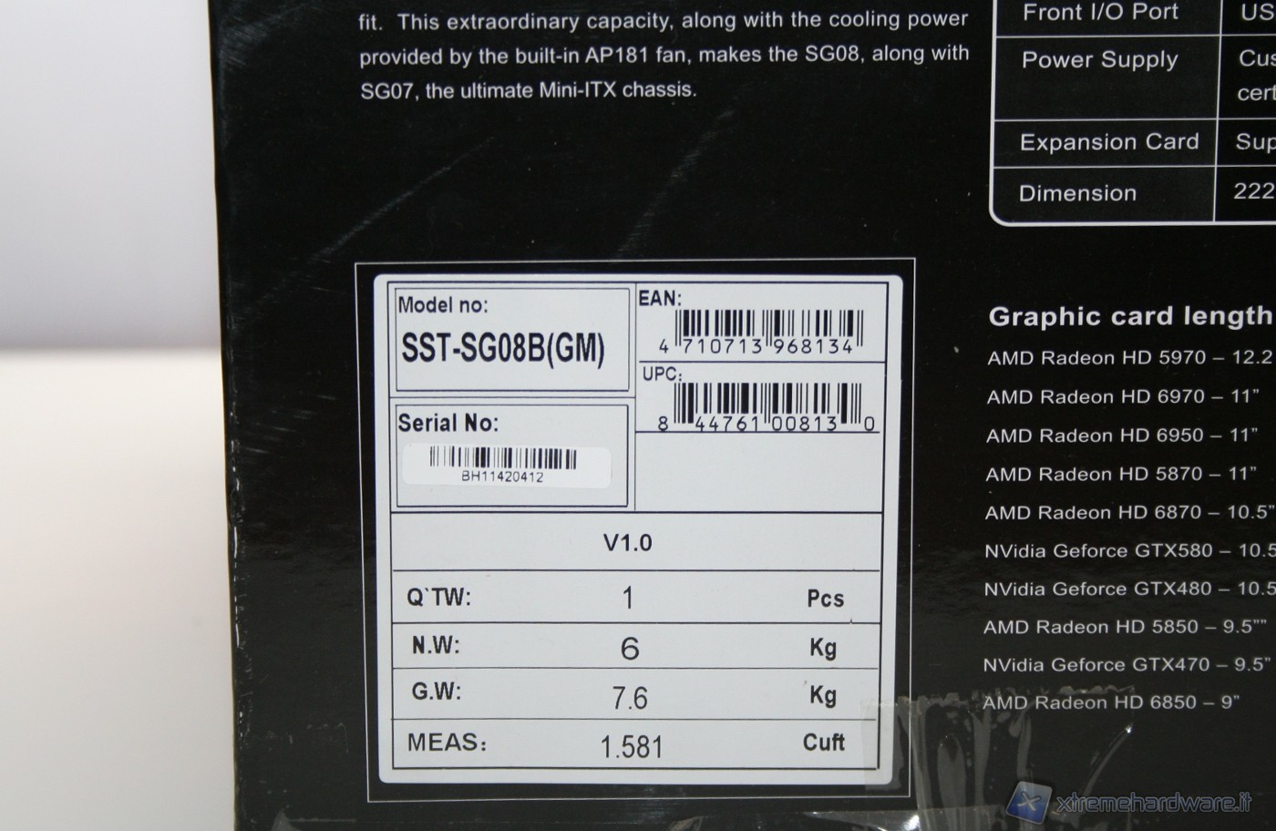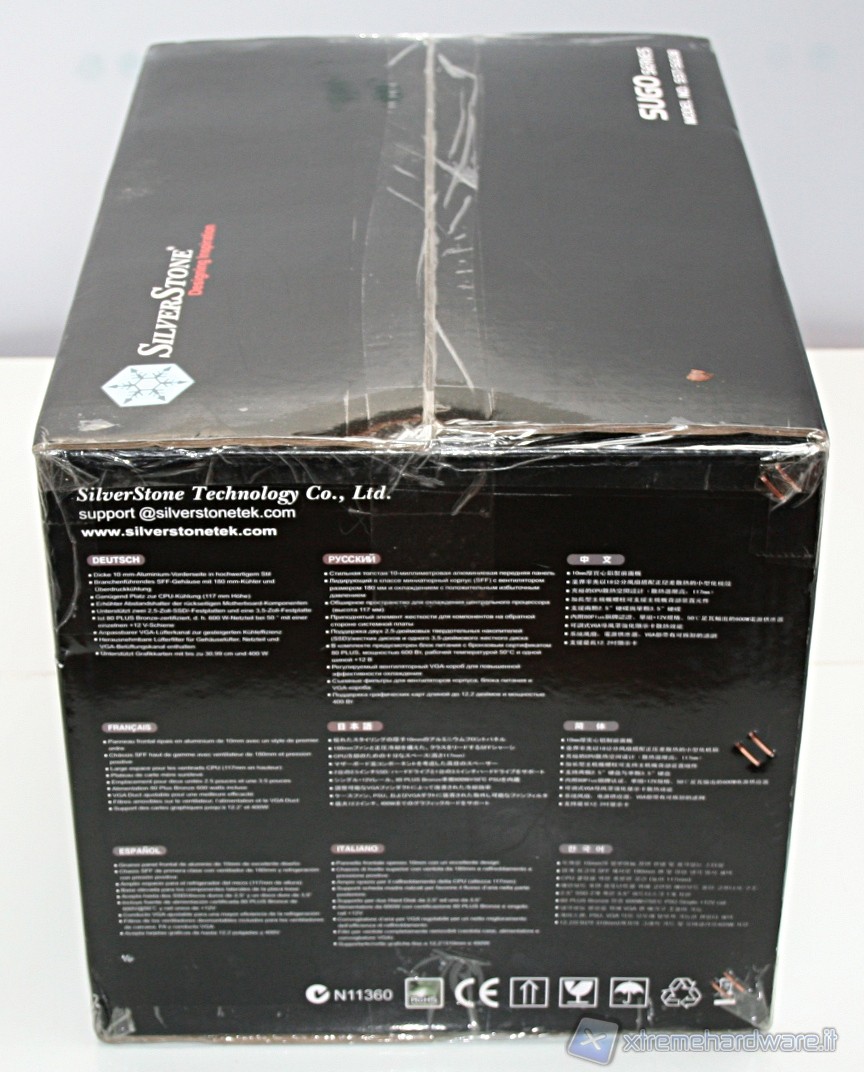 Il cabinet è stato imballato nel classico ed ottimo box SilverStone. Ottime le foto, molte le informazioni dettagliate e adeguata la descrizione dell’unità. All’interno il cabinet è al riparo da potenziali urti grazie a due gigantesche protezioni in polistirolo, cartone protettivo ed una grande busta di plastica contro graffi accidentali.