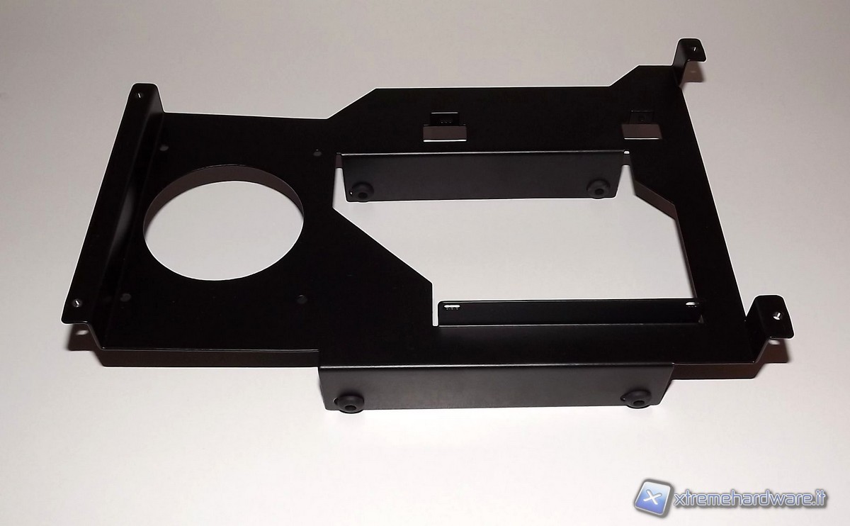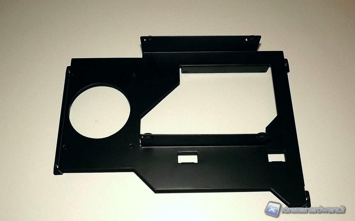 Il rack per le periferiche di memorizzazione, una volta rimosso dall'interno dello chassis, appare nella sua interezza. E' composta da un'unico blocco di alluminio dallo spessore di 1mm circa. Le varie parti sono progettate in maniera estremamente precisa e curata. Sono già installate alcuni gommini antivibrazioni per potere installare l'unità di archiviazione in tuttà tranquillità. Nelle prossime pagine vedremo come installare le unità ODD e HDD.