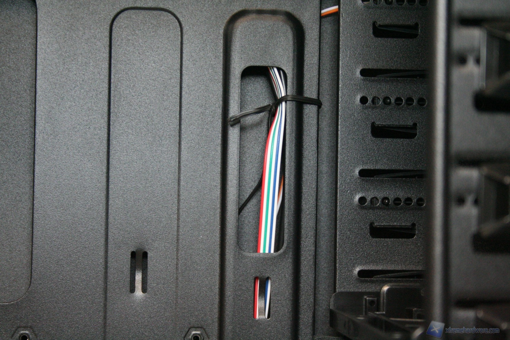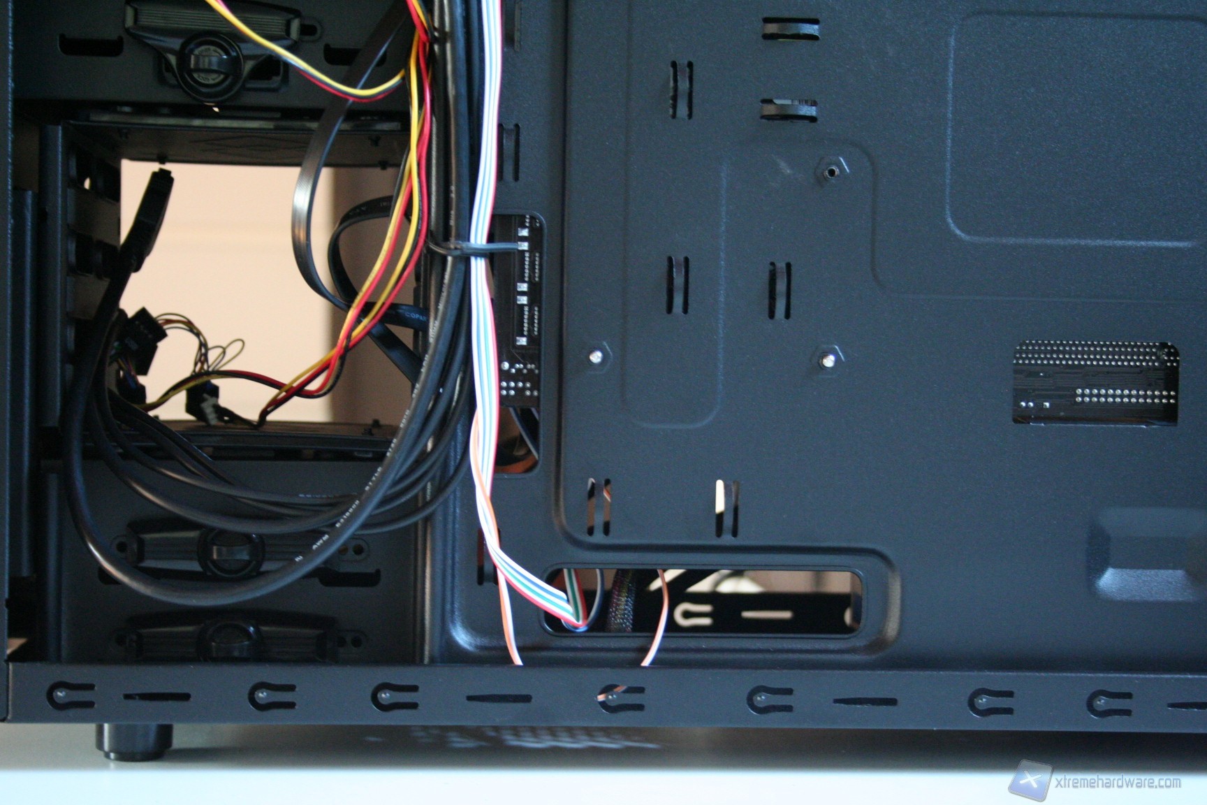 Una volta rimossa la scomoda paratia laterale, possiamo notare fin da subito che sebbene sia una soluzione economica, nulla è stato lasciato al caso e presenta una configurazione moderna. Abbiamo apprezzato il fatto che sulla carta non supporta schede madri E-ATX, mentre in realtà abbiamo potuto installare una Rampage II Extreme, rinunciando soltanto ai fori per il passaggio dei cavi. E’ spazioso quanto basta per un potente sistema e permetterà persino l’integrazione di sistemi a liquido dalla media potenza. Sorge spontanea una domanda: cosa si può volere di più da un cabinet tanto economico?