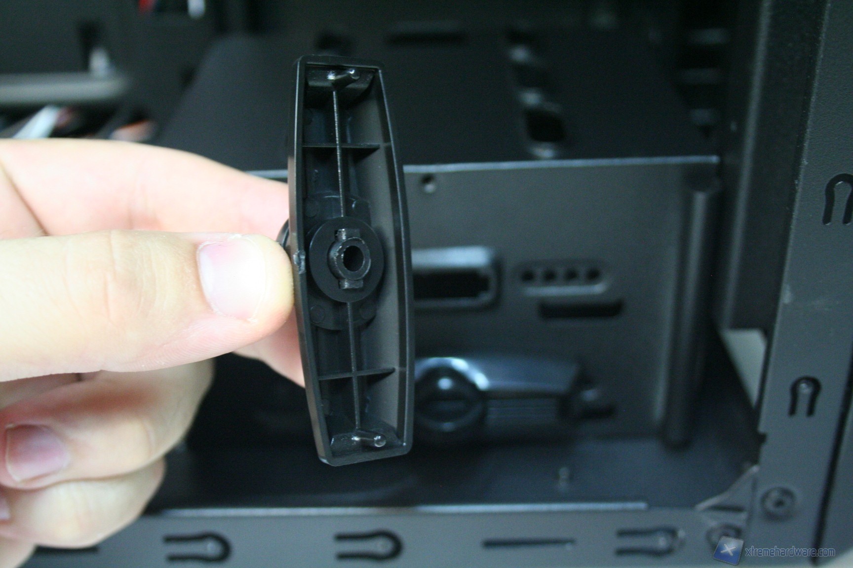 A livello di dissipazione termica i dischi sono raffreddati dalla ventola frontale in immissione; vogliamo far presente che forse una sola ventola da 120mm è insufficiente, come vedremo per quanto riguarda soprattutto la CPU e la scheda video. Tuttavia questo problema può essere facilmente aggirato grazie alla possibilità di installare molte altre ventole, nella parte superiore, inferiore e laterale.