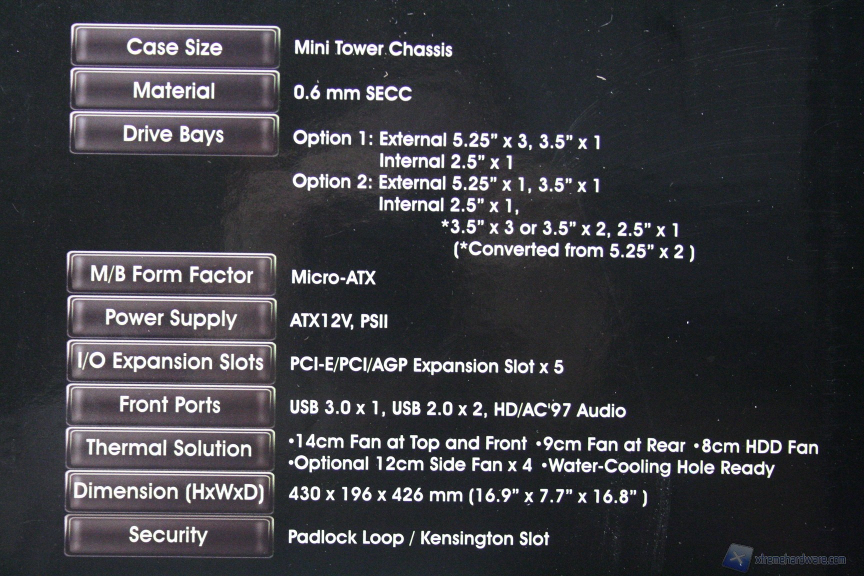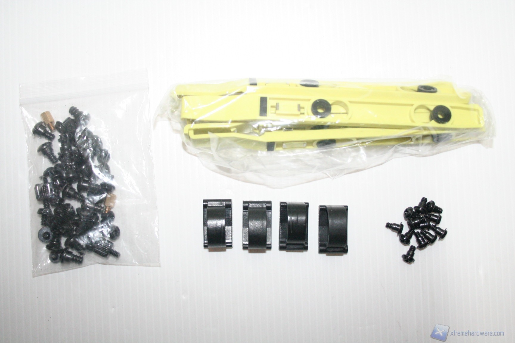 Il bundle in dotazione è particolare in quanto non ci sono le fascette fermacavo, che sono sostituite però da quattro supporti con adesivo alla base che permettono un buon cable routing. Come ventole ne troviamo 2 140mm (una sul top e una frontale), una 90mm (posteriore) e una 80mm di fronte agli HDD,[L1]  una dotazione quindi di ottimo livello per un cabinet low-budget !