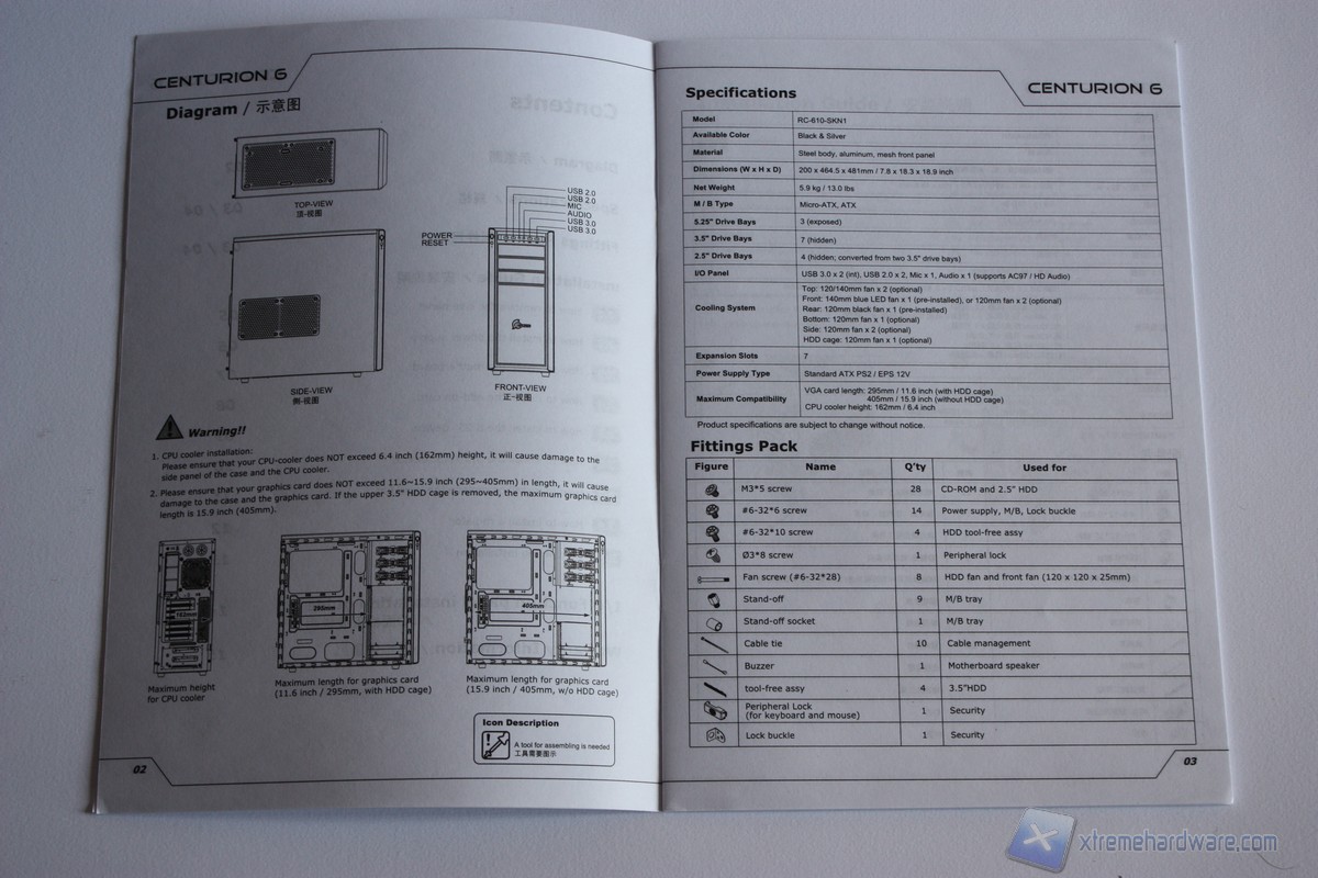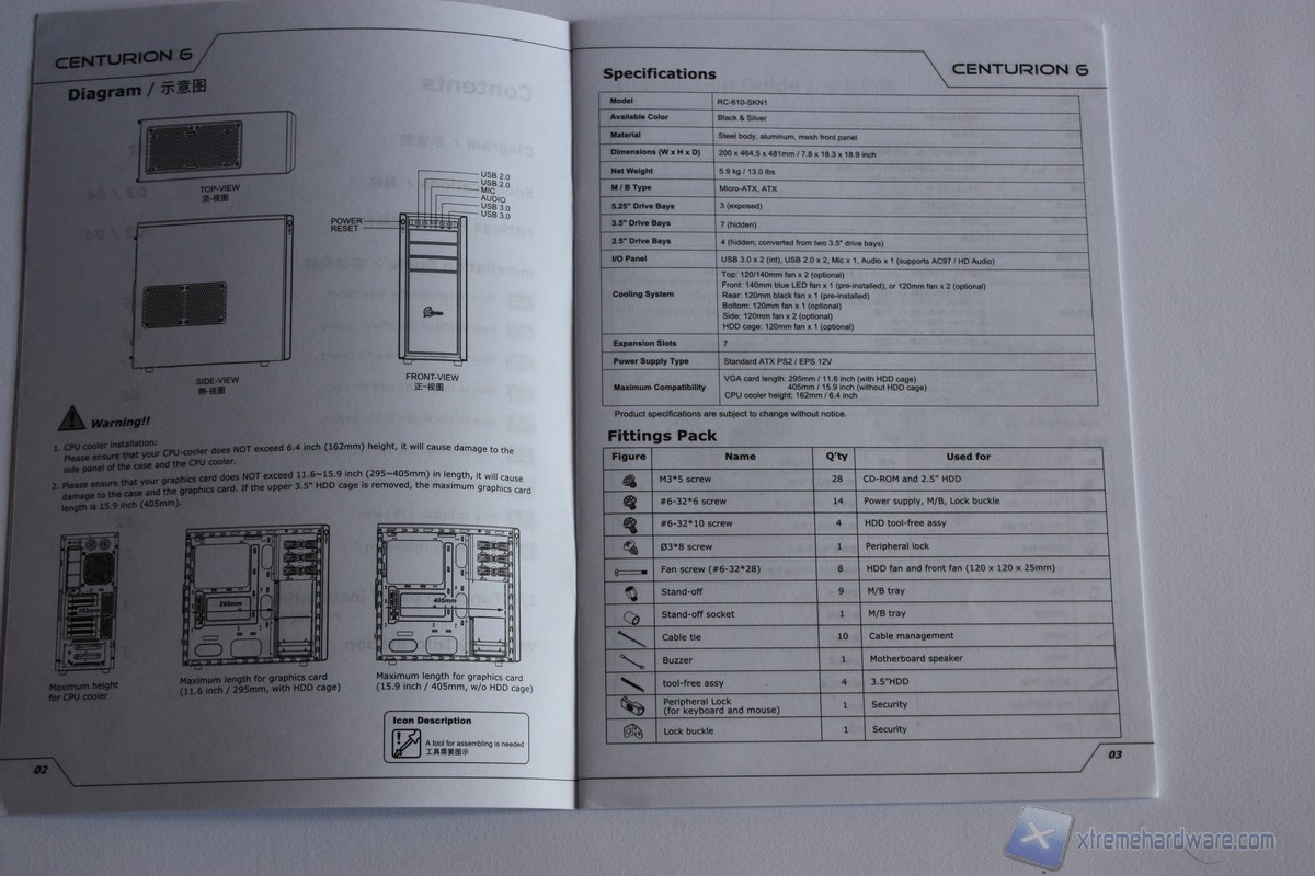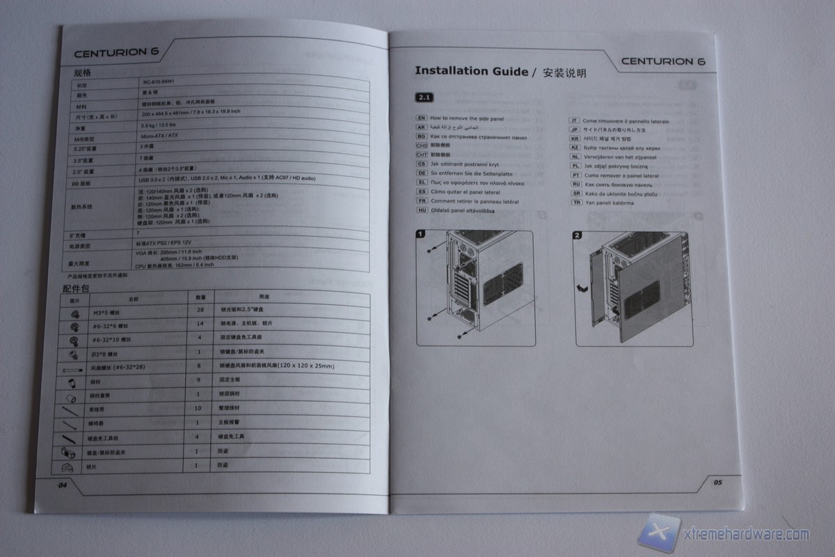 Andiamo ora ad anlizzare il manuale fornito con il Cooler Master Centurion 6: