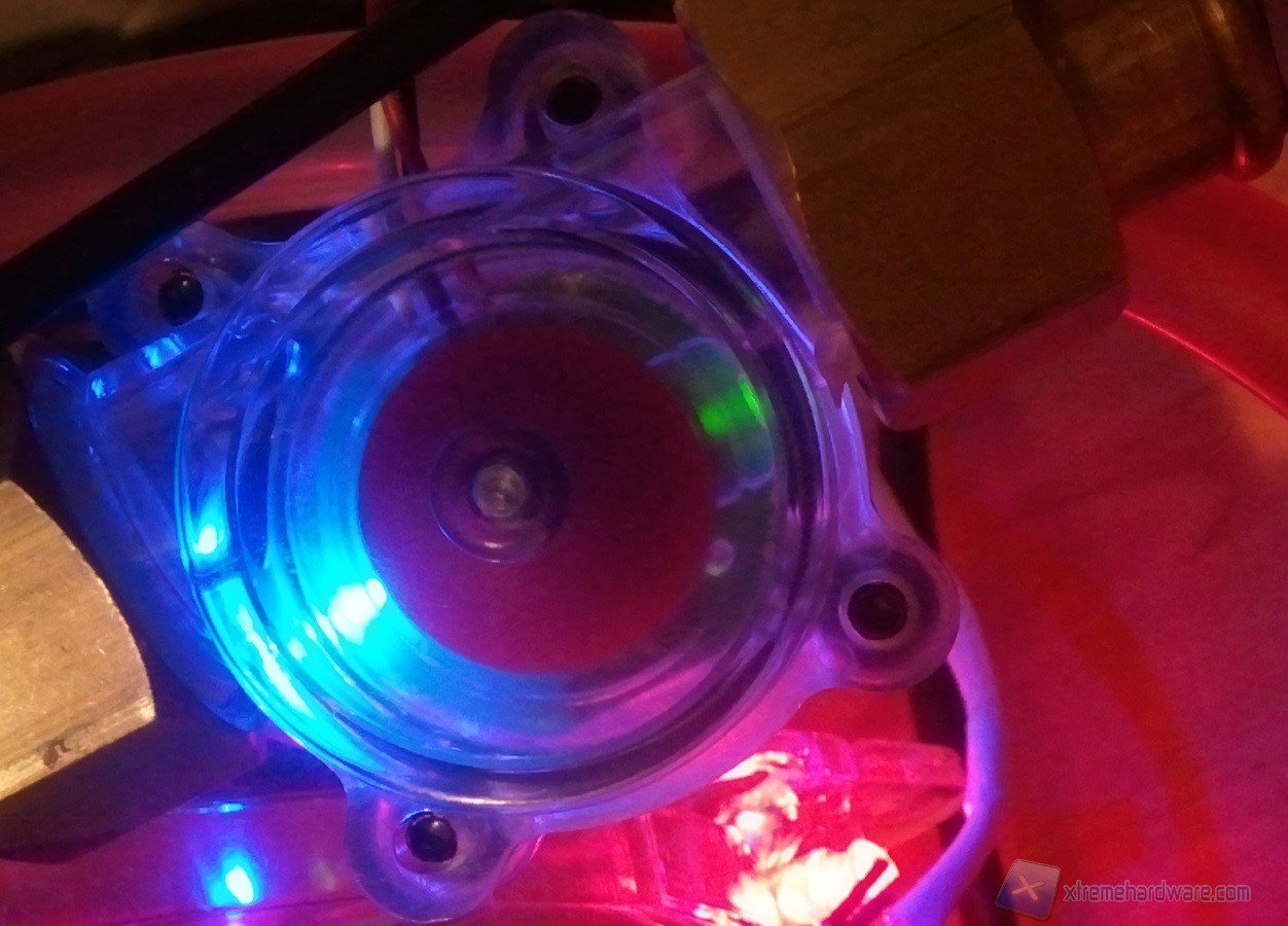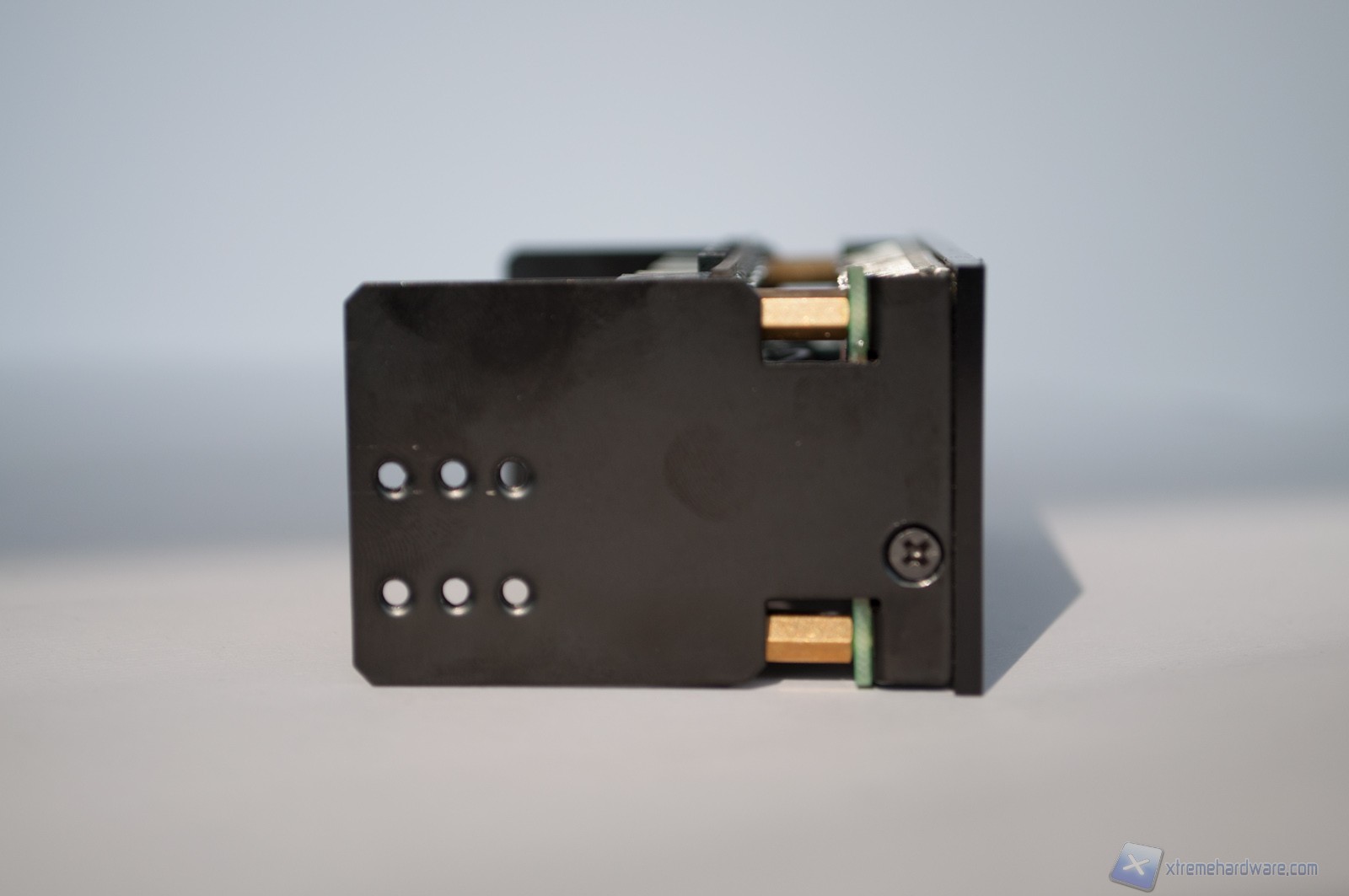 Il primo canale è stato dedicato al controllo di 5 ventole Phobya da 1500 RPM. Il secondo è stato adibito al controllo della pompa DC12-400. Nel terzo canale abbiamo collegato il flussimetro e, infine, nel quarto canale abbiamo collegato una ventola Phobya 14 da 1100 RPM, posizionata in corrispondenza delle fasi di alimentazione della scheda madre. Al primo avvio le tensioni di tutti i canali erano impostate a zero, quindi vi consigliamo di regolare preventivamente il fan controller prima di collegare la pompa oppure di imparare bene l’interfaccia in modo da poter regolare subito il canale corrispondente alla pompa.