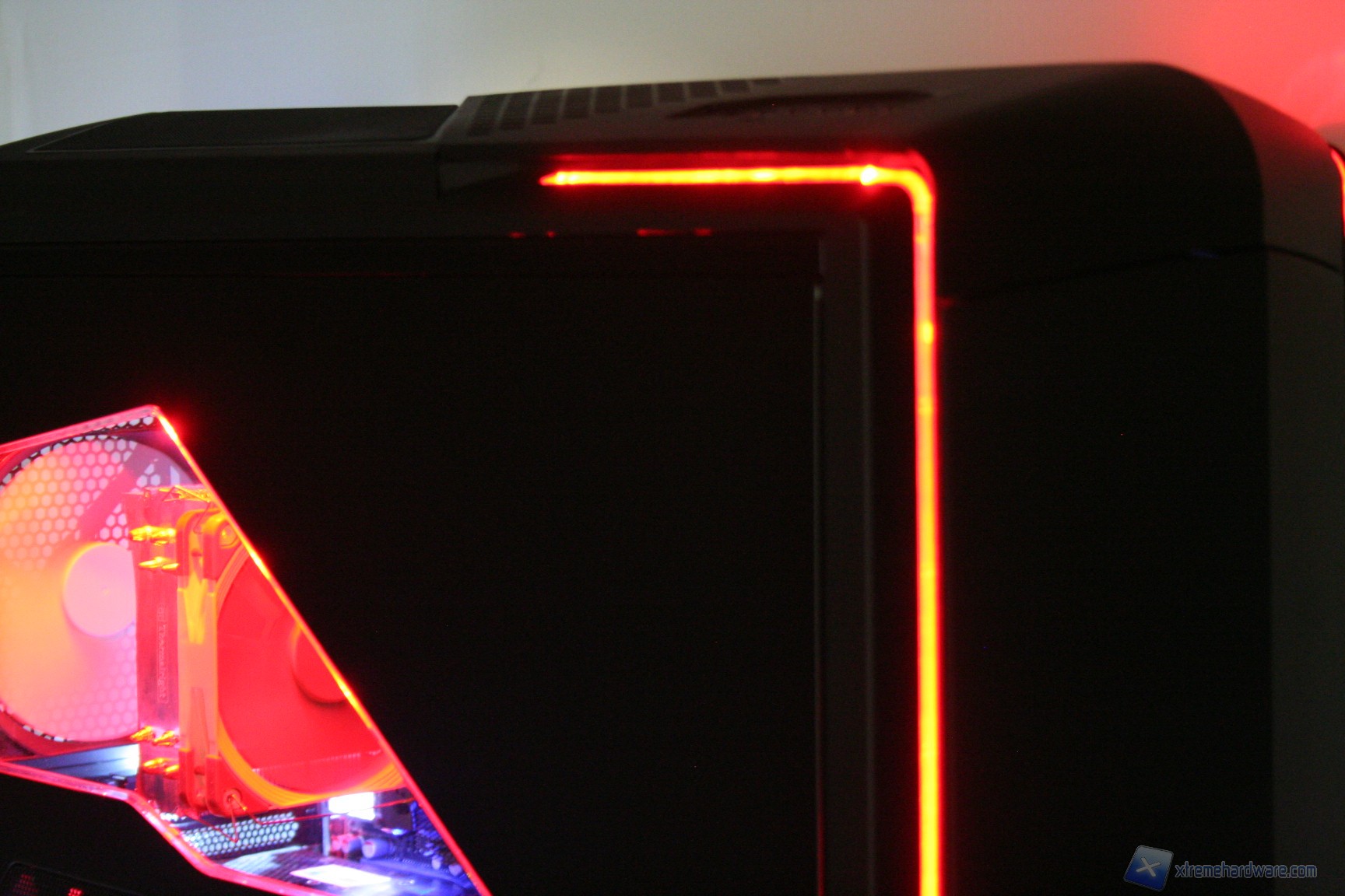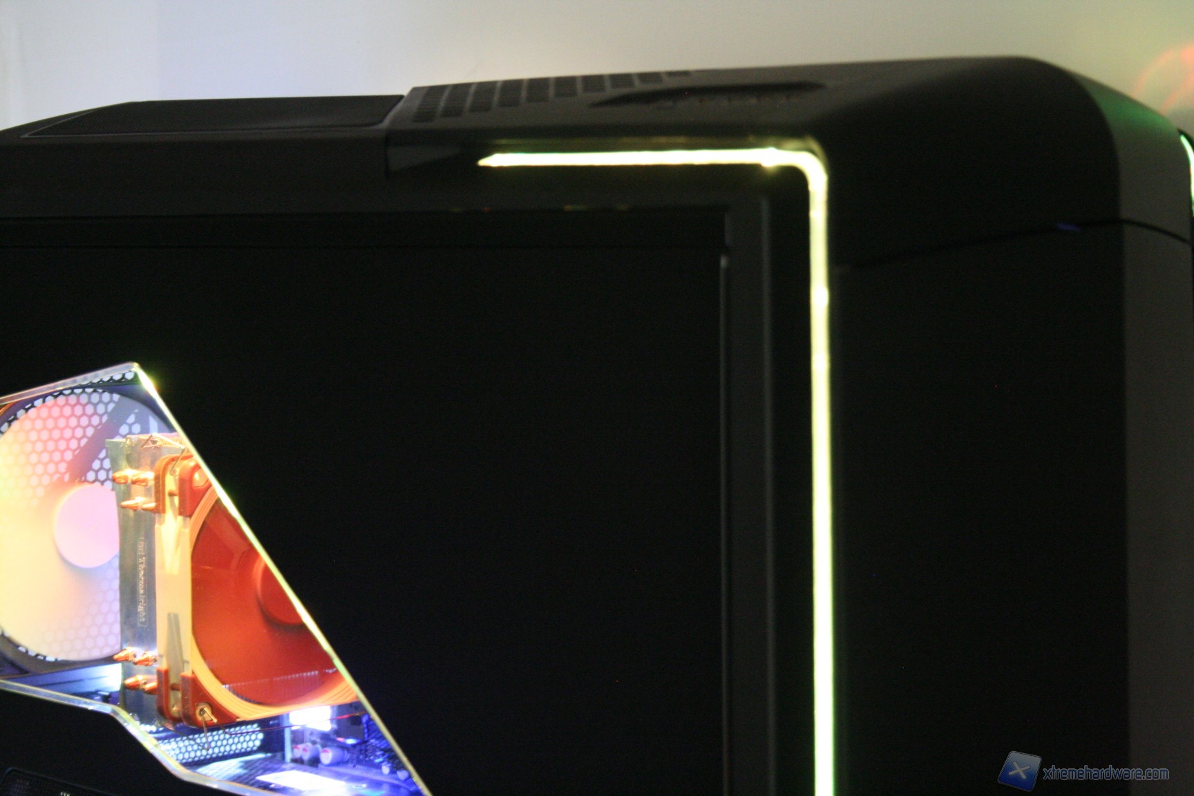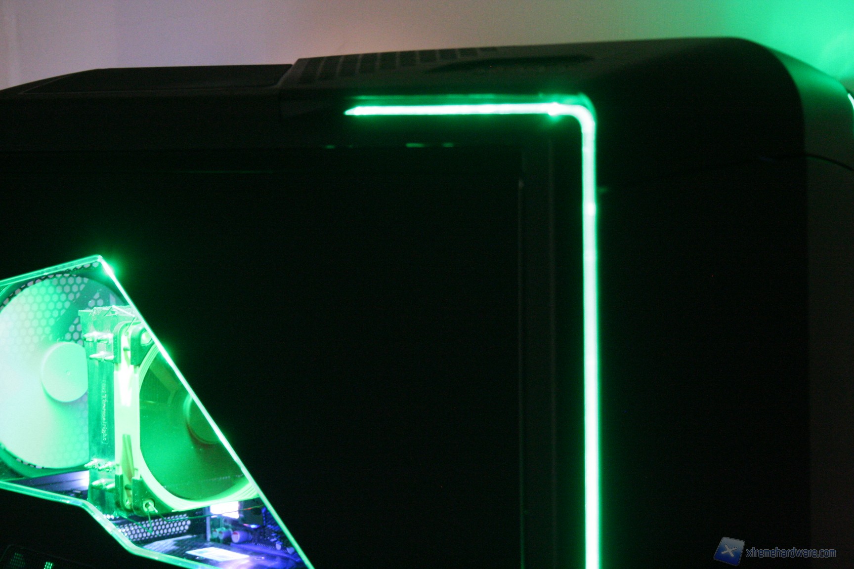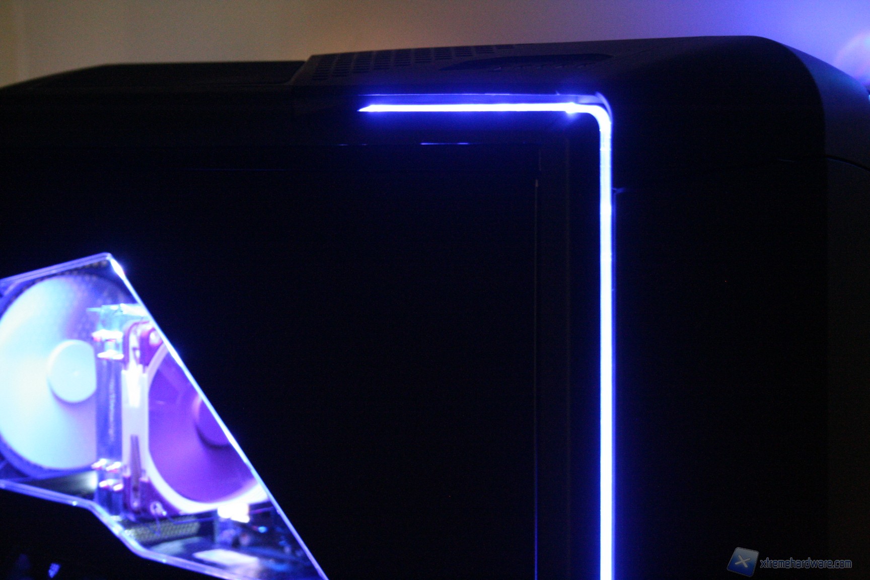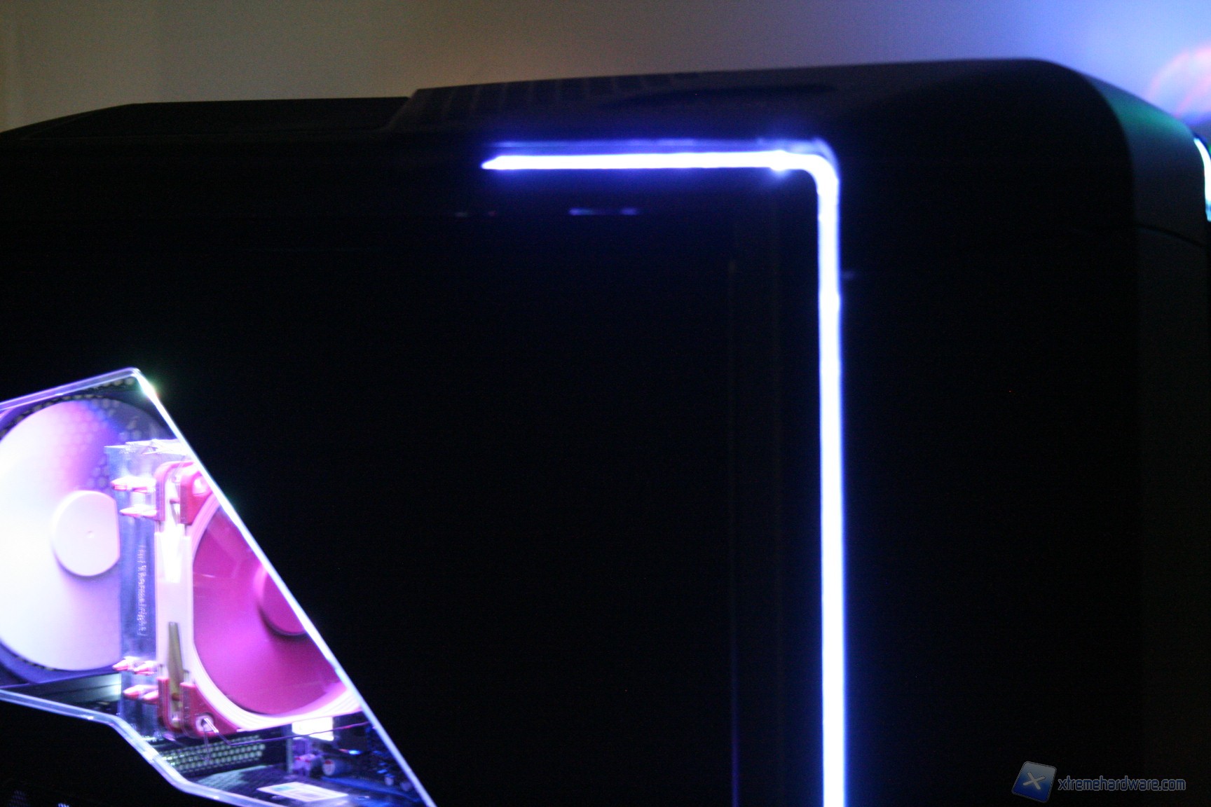 NZXT ha dotato questo modello di uno dei più complessi ed interessanti sistemi di illuminazione interni per cabinet; il sistema è regolato frontalmente e permette l’illuminazione controllata via LED RGB. Più che descrivere, ve lo facciamo visionare direttamente. Un consiglio, attenzione alle mascelle perché potrebbero cadere a terra. Esagerazioni a parte (tanto sterili quanto doverose), l’integrazione di un sistema del genere è eccelsa, sia in termini strutturali, sia tecnici ed anche estetici. Un particolare su tutti, i LED superiori: