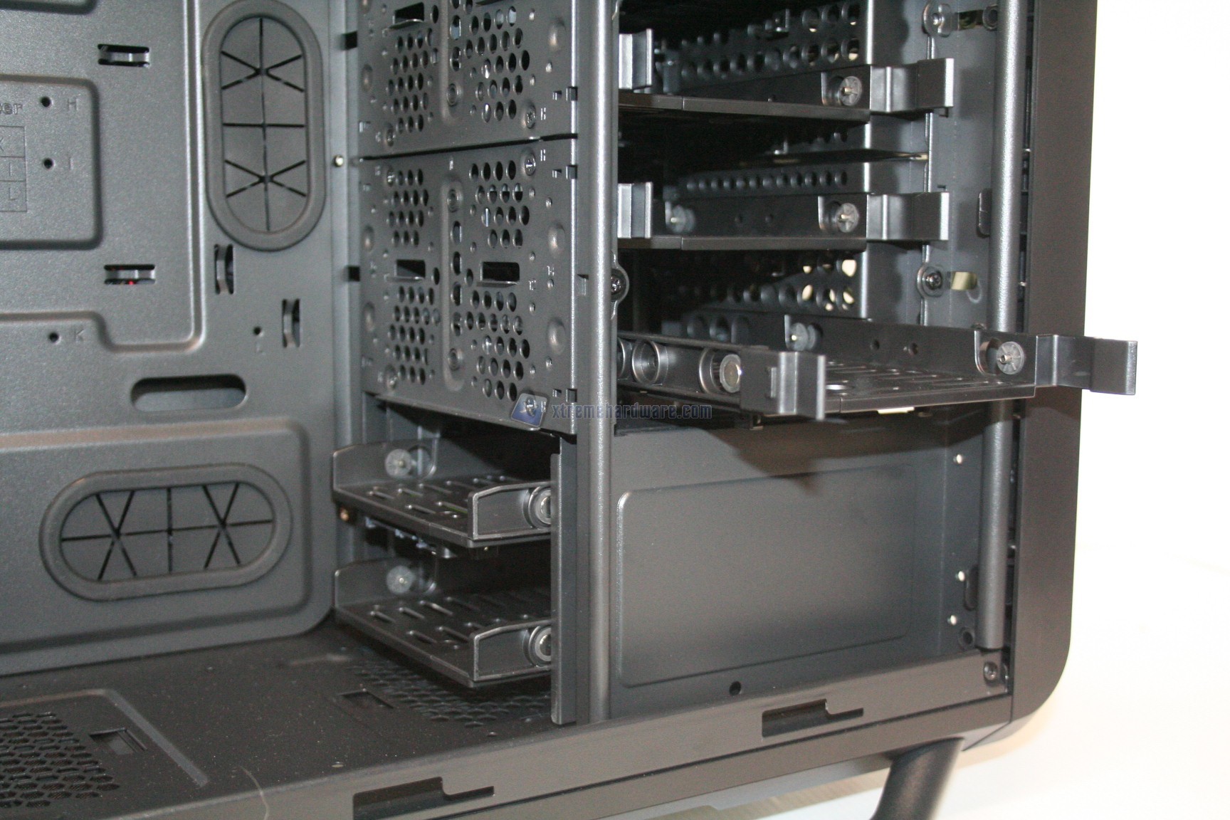La gestione dei dischi rigidi è molto buona, tuttavia non sono presenti predisposizioni per sistemi hot-swap. E' presente una serie di cage a veloce rimozione, liberamente configurabili ma ancorati al telaio principale.