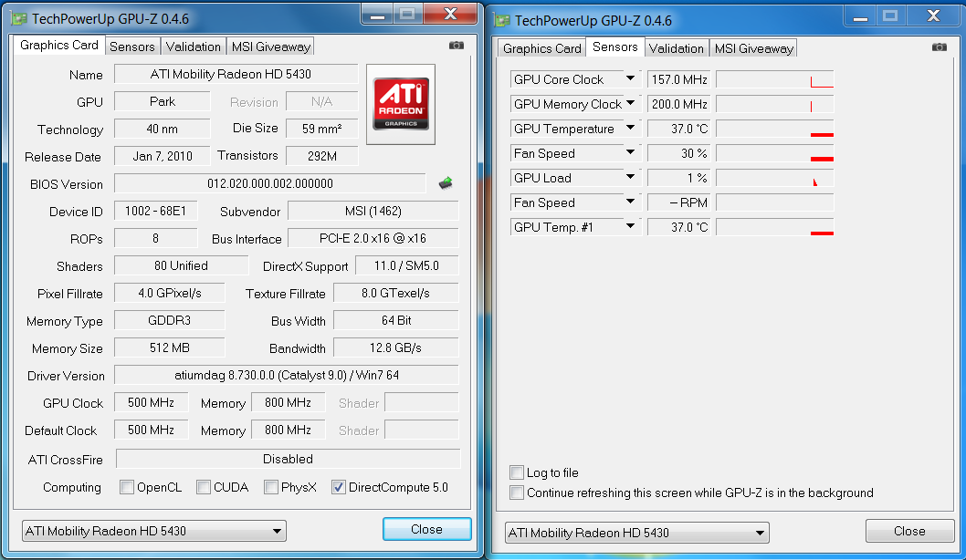 La scheda madre è naturalmente una MSI MS-AC321 per cpu con skt 775 e memorie di tipo DDR3, mentre la scheda video è una GPU ATI Mobility Radeon™ HD 5430 prodotta da AMD/ATI in grado di supportare le DX 11 e SM 5.0 con una frequenza di clock di 500 MHz per il core e 800 MHz per la memoria.