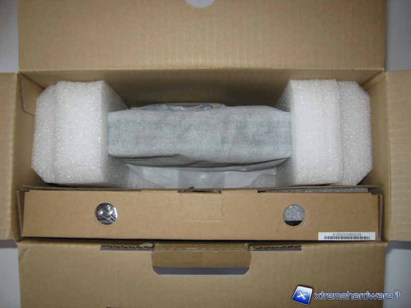 Aperta la scatola troviamo il nostro mini-pc dentro un sacchetto di tela ben imballato compresso tra due elementi di polistirolo che lo tengono ben fermo nella scatola, una piccola guida illustrata e un'altra confezione di cartone con il bundle del prodotto.