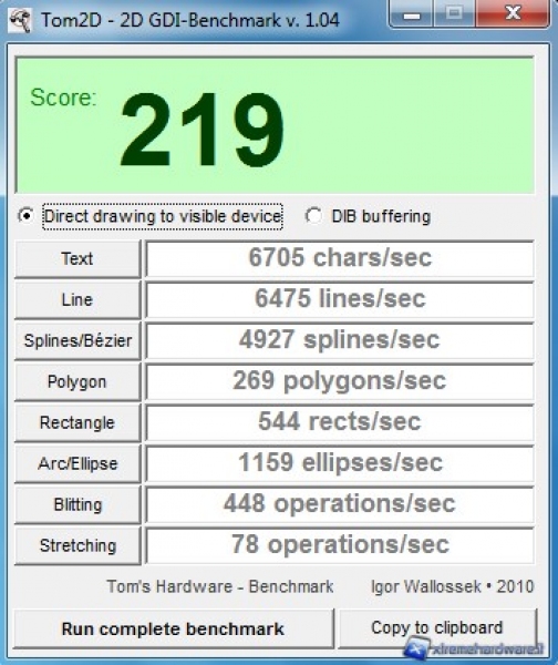 Di seguito abbiamo provato le prestazioni in ambito 2D con il tool Tom's 2d Benchmark, potete osservare i risultati ottenuti direttamente con il tool nella schermata sottostante: