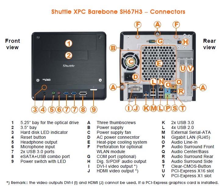 Come abbiamo già avuto modo di capire, le specifiche tecniche di questo sistema mini pc prodotto da Shuttle si attestano su ottimi livelli qualitativi, disponendo di una ricca dotazione di interfacce. Per semplicità riportiamo gli schemi tecnici che riassumono le caratteristiche: