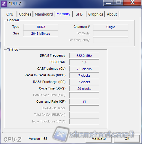 La RAM So-DIMM DDR3 installata nel sistema è di 2GB, un quantitativo adatto all'utilizzo basilare dell'AE2071, il singolo modulo utilizzato è prodotto da Samsung ed ha una frequenza operativa di 1066MHz e latenze di 7-7-7-24. Il voltaggio utilizzato è di 1.5V quindi in linea con le specifiche del Datasheet Sandy Bridge che prevede un limite massimo consigliato di 1.57V, ovviamente essendo un solo modulo non sarà possibile usufruire della tecnologia Dual Channel, i cui vantaggi tuttavia sono spesso molto contenuti.